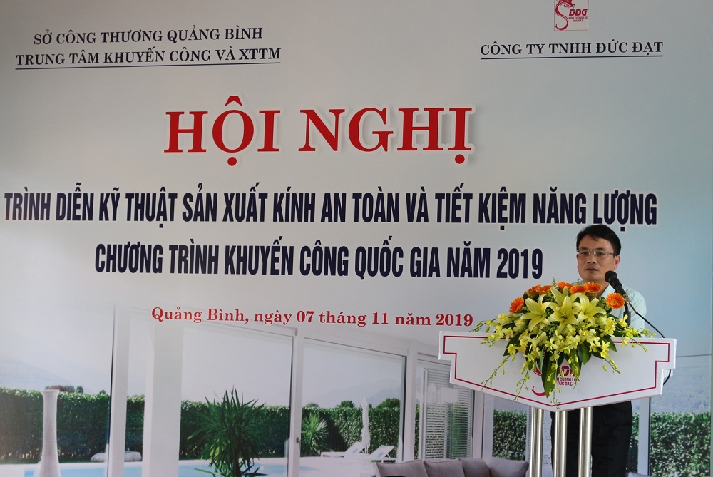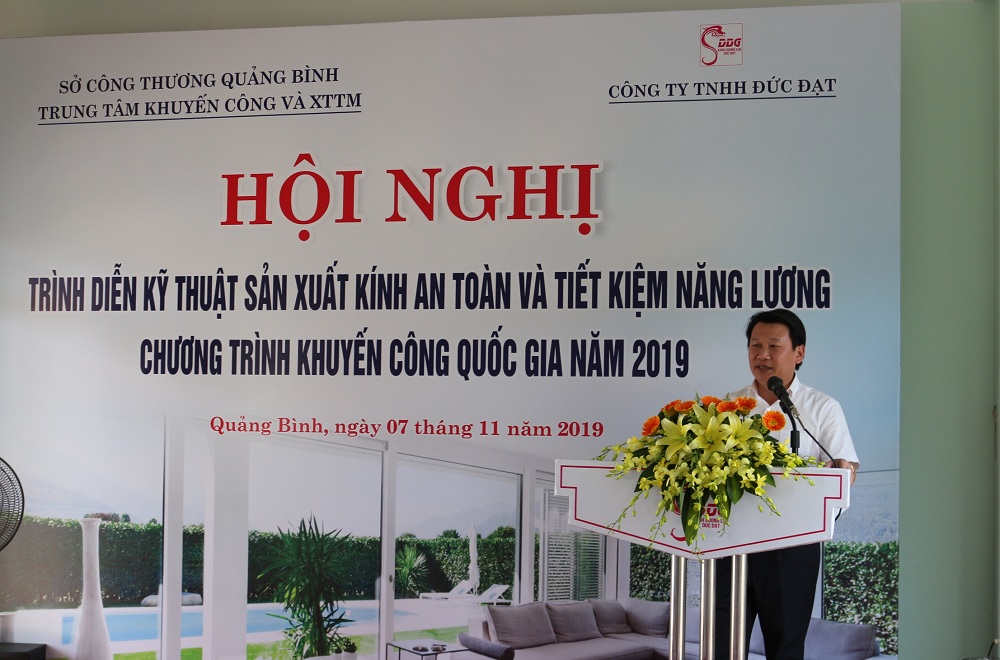 Hội nghị đã nghe ông Lê Mậu Khánh Giám đốc Trung tâm Khuyến công và Xúc tiến thương mại, báo cáo quá trình xây dựng mô hình trình diễn kỹ thuật sản xuất kính an toàn và tiết kiệm năng lượng tại Công ty TNHH Đức Đạt. Đây là mô hình trình diễn phổ biến công nghệ mới lần đầu tiên được áp dụng trên địa bàn tỉnh Quảng Bình. Với kinh phí hỗ trợ từ nguồn Khuyến công quốc gia năm 2019 là 1 tỷ đồng. Việc hỗ trợ “Xây dựng mô hình trình diễn kỹ thuật sản xuất kính an toàn, tiết kiệm năng lượng” sẽ góp phần góp phần giải quyết việc làm cho lao động địa phương. Tác động của dự án có sức lan tỏa tốt tới nhiều lĩnh vực, ngành kinh tế khác trong tỉnh như: thay đổi thói quen sử dụng vật liệu xây dựng, góp phần chống biến đổi khí hậu, sử dụng năng lượng tiết kiệm và hiệu quả nâng cao chất lượng cuộc sống…, đồng thời cung cấp các sản phẩm kính an toàn và tiết kiệm năng lượng đạt chất lượng tốt cho thị trường trong nước và xuất khẩu, đóng góp một phần ngân sách cho tỉnh nhà.