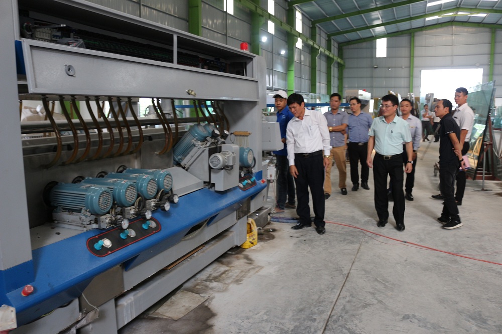 Các Đại biểu tham quan mô hình trình diễn kỹ thuật sản xuất kính an toàn, tiết kiệm năng lượng