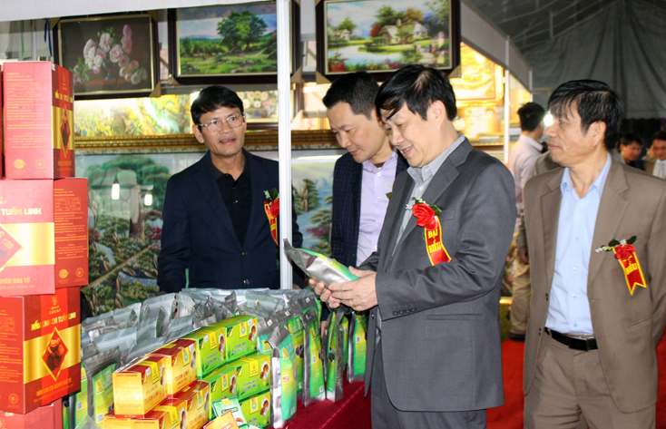 Đ/c Trần Công Thuật, Chủ tịch UBND tỉnh và Lãnh đạo Sở Công Thương tham quan gian hàng