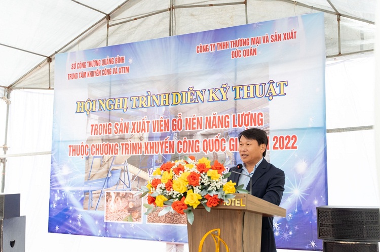 Phát biểu chỉ đạo Hội nghị, ông Đào Anh Tuấn - Phó Giám đốc Sở Công Thương, đánh giá cao những kết quả đạt được và biểu dương Công ty TNHH Thương mại và Sản xuất Đức Quân đã tích cực trong việc triển khai mô hình trình diễn kỹ thuật trong sản xuất viên gỗ nén năng lượng; trong thời gian tới, công ty cần có các hoạt động quảng bá rộng rãi hình ảnh của mình để nhiều doanh nghiệp trong và ngoài tỉnh biết đến; tăng cường đào tạo nâng cao tay nghề của công nhân, tiếp cận hoàn toàn công nghệ của dây chuyền sản xuất từ đó nâng cao chất lượng của sản phẩm, đáp ứng nhu cầu ngày càng cao của thị trường. Qua đó Ông cũng ghi nhận Trung tâm Khuyến công và Xúc tiến thương mại Quảng Bình trong việc tìm kiếm và xây dựng mô hình. Trong thời gian tới, đề nghị Trung tâm tiếp tục đồng hành, hỗ trợ đơn vị trong việc giới thiệu mô hình, quảng bá thương hiệu nhằm giúp doanh nghiệp xây dựng và phát triển bền vững.