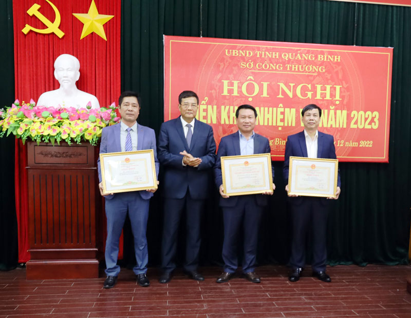 Tại hội nghị, thừa ủy quyền của Thủ tướng Chính phủ, Lãnh đạo Sở Công Thương đã trao bằng khen cho 1 cá nhân vì đã có thành tích xuất sắc trong công tác từ năm 2017-2021; tặng danh hiệu Tập thể Lao động xuất sắc cho 1 tập thể; bằng khen của Chủ tịch UBND tỉnh cho 02 cá nhân; giấy khen của Giám đốc Sở Công Thương cho 09 tập thể vì đã có thành tích xuất sắc trong công tác năm 2022.