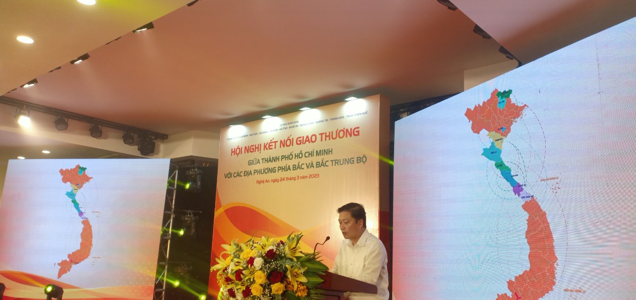 Chiều ngày 24/3, tại TP Vinh, tỉnh Nghệ An đã diễn ra hội nghị kết nối giao thương giữa TP Hồ Chí Minh với các địa phương phía Bắc (Bắc Kạn, Cao Bằng, Hà Nam) và Bắc Trung Bộ (Thanh Hoá, Nghệ An, Hà Tĩnh, Quảng Bình, Quảng Trị, Thừa Thiên Huế).