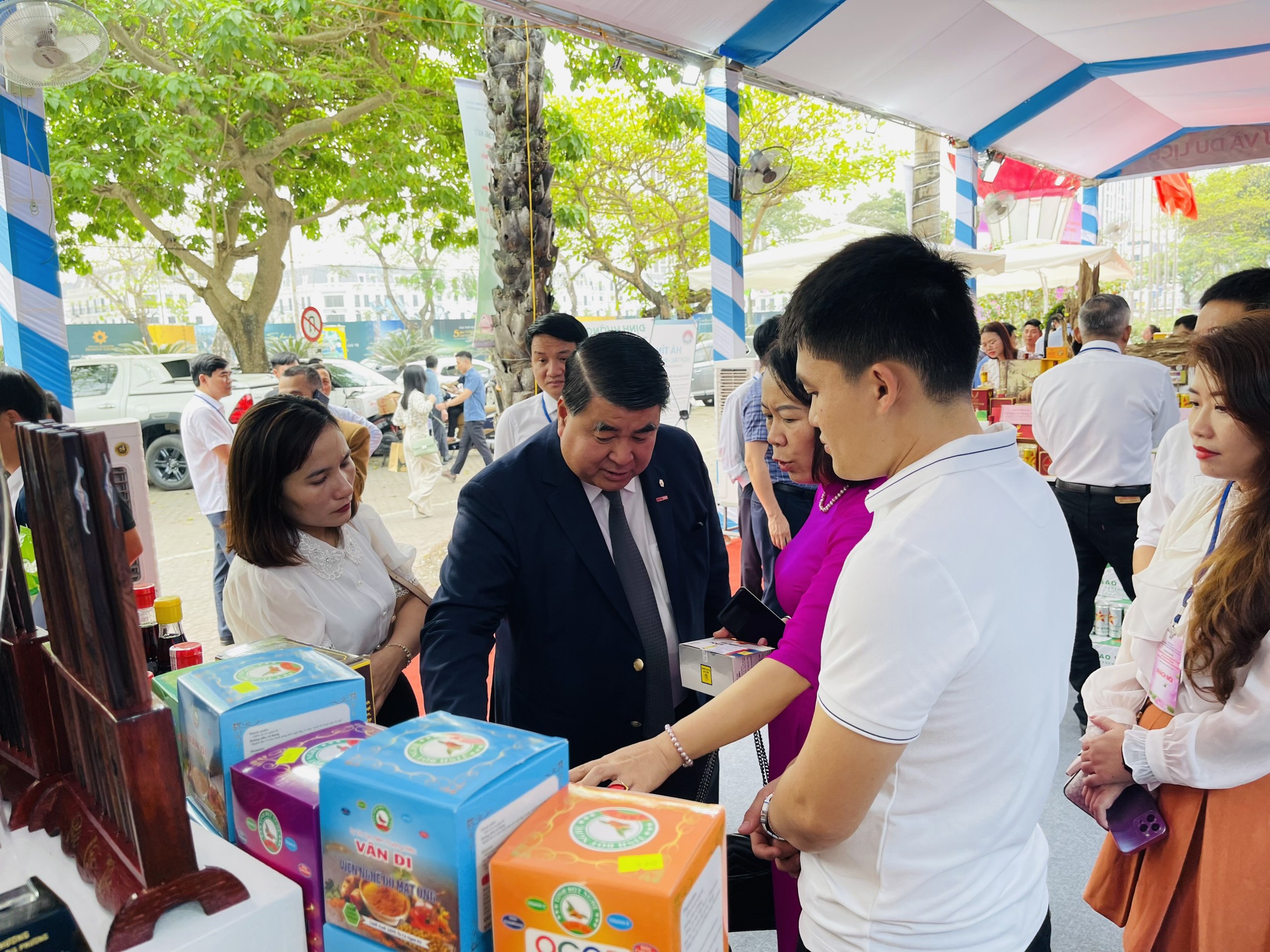 Trong chương trình Hội nghị, các đại biểu đã dành thời gian quan tâm, tham quan khu vực các gian hàng trưng bày triển lãm quảng bá các sản phẩm OCOP, sản phẩm Công nghiệp nông thôn tiêu biểu, dịch vụ du lịch và xúc tiến đầu tư của các tỉnh, thành phố. Tại Triển lãm, gian hàng tỉnh Quảng Bình tham gia trưng bày hơn 60 loại sản phẩm của 20 doanh nghiệp, hợp tác xã tiêu biểu của tỉnh về các ngành hàng: nông sản, thuỷ hải sản chế biến và tiểu thủ công nghiệp, cùng các video, ấn phẩm quảng bá xúc tiến đầu tư, thương mại và du lịch.