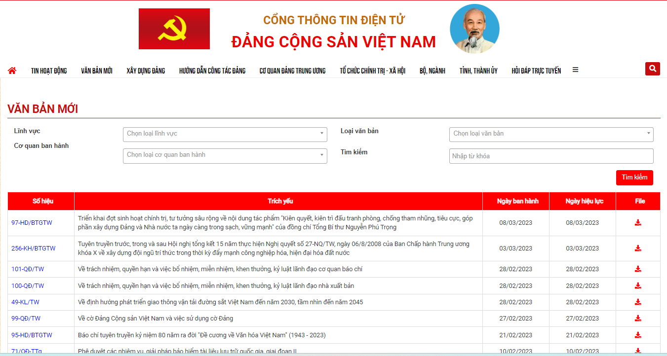 Việc tra cứu và sử dụng các văn kiện, tài liệu liên quan đến công tác Đảng được thực hiện thuận lợi trên Cổng TTĐT