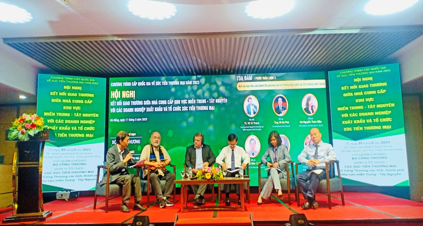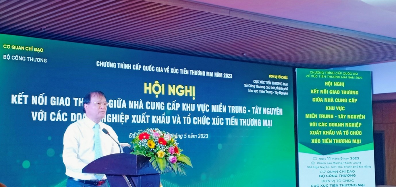 Sáng ngày 11/5/2023 tại thành phố Đà Nẵng đã diễn ra “Hội nghị kết nối giao thương giữa các nhà cung cấp khu vực Miền Trung - Tây Nguyên với các doanh nghiệp xuất khẩu và tổ chức xúc tiến thương mại”. Đây là hoạt động nằm trong khuôn khổ Chương trình cấp quốc gia về Xúc tiến thương mại năm 2023 do Cục Xúc tiến thương mại phối hợp cùng Sở Công Thương, Trung tâm Khuyến công và Xúc tiến thương mại, Trung tâm Xúc tiến thương mại, Đầu tư, Du lịch các tỉnh, thành phố tổ chức