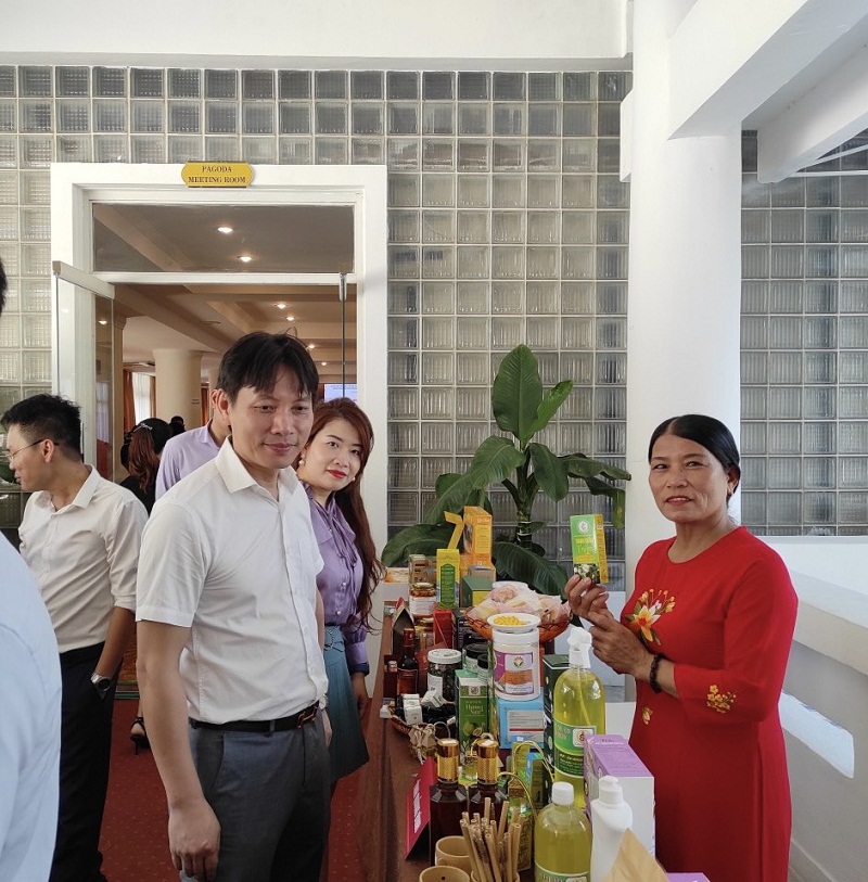 Trong chương trình Hội nghị, các đại biểu đã dành thời gian quan tâm, tham quan khu vực các gian hàng trưng bày triển lãm quảng bá các sản phẩm OCOP, sản phẩm Công nghiệp nông thôn tiêu biểu của các tỉnh khu vực Bắc Trung Bộ. Tại Triển lãm, gian hàng tỉnh Quảng Bình tham gia trưng bày hơn 50 loại sản phẩm của 16 doanh nghiệp, hợp tác xã tiêu biểu của tỉnh về các ngành hàng: nông sản, thuỷ hải sản chế biến và tiểu thủ công nghiệp.
