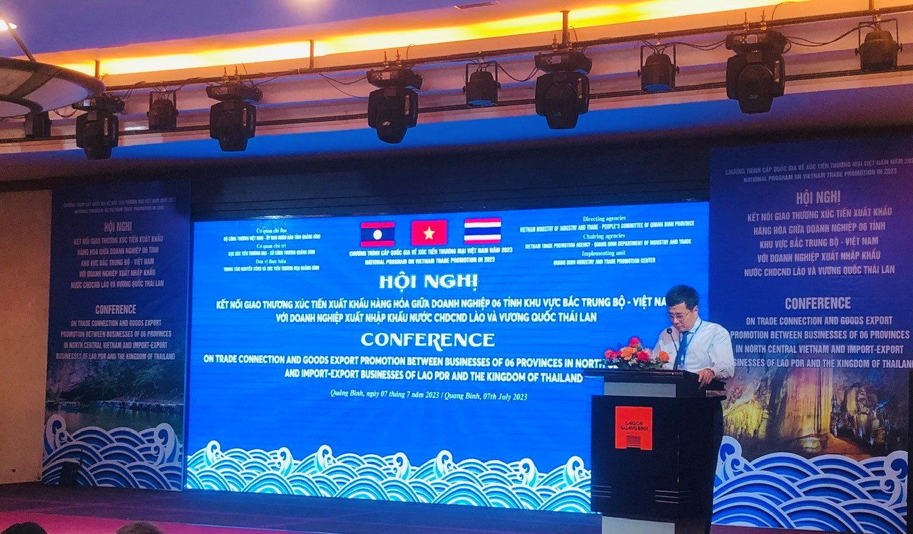Thực hiện Chương trình cấp quốc gia về Xúc tiến thương mại năm 2023 được Bộ Công Thương phê duyệt, được sự đồng ý của Lãnh đạo Sở Công Thương, Trung tâm Khuyến công và Xúc tiến thương mại Quảng Bình tổ chức “Hội nghị kết nối giao thương xúc tiến xuất khẩu hàng hóa giữa doanh nghiệp 06 tỉnh khu vực Bắc Trung Bộ Việt Nam với doanh nghiệp xuất nhập khẩu nước CHDCND Lào và Vương quốc Thái Lan”.