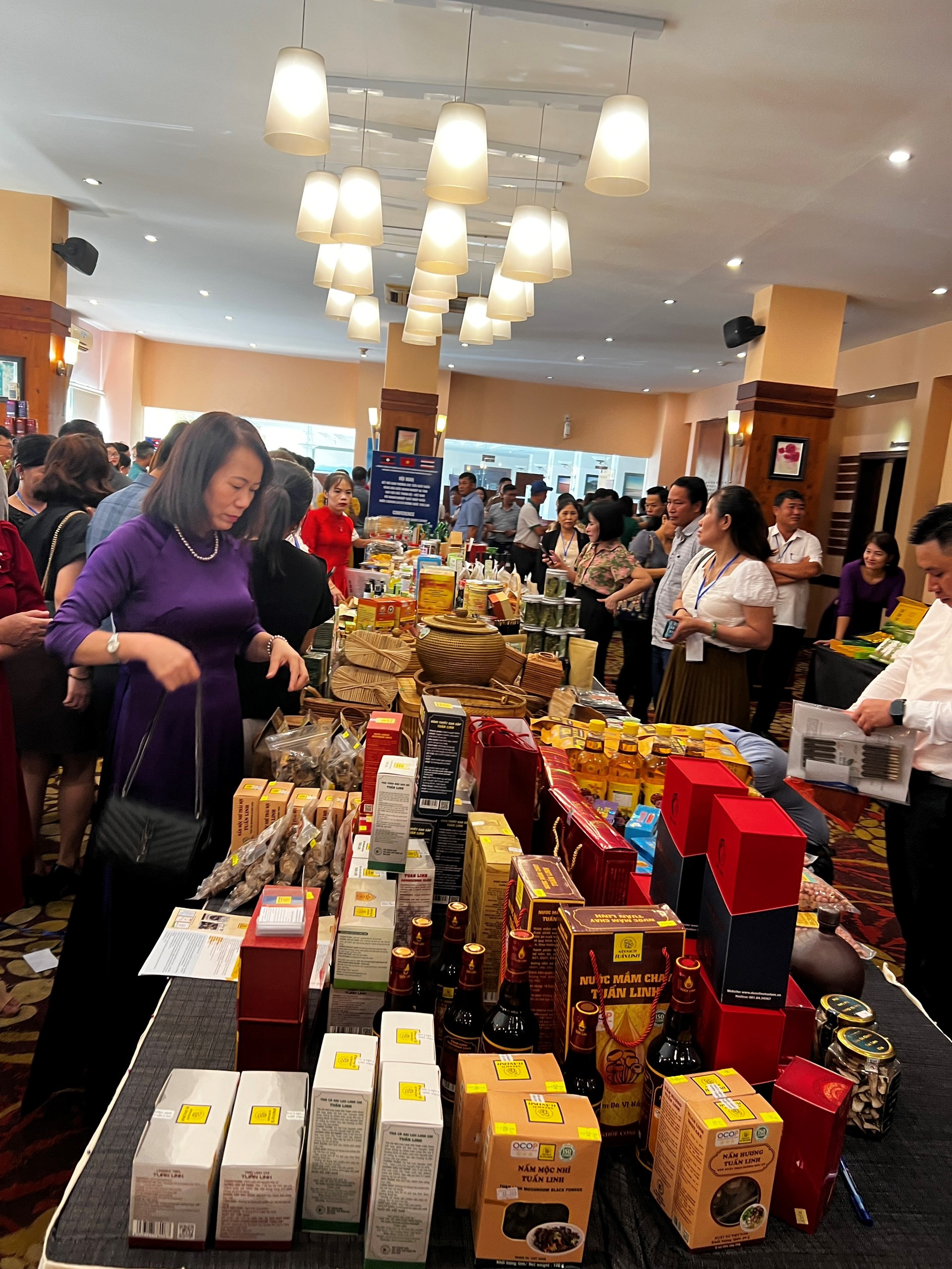 Các sản phẩm của tỉnh Quảng Bình tham gia trưng bày tại Hội nghị là những sản phẩm Công nghiệp nông thôn tiêu biểu, OCOP (Nấm Tuấn Linh, nấm Bắc Tiến; đũa gỗ Quảng Thuỷ; tinh bột nghệ Vân Di, tinh bột Hiền Thuấn; rượu Trường Chinh, rượu nếp cẩm O vịnh, rượu sim Xuân Hưng; miến dong Sông Son; khoai gieo Như Mận, khoai gieo Linh Huệ; sâm bố chính Tuệ Lâm; tinh dầu tràm, sả Dinh Trạm, tinh dầu tràm Giáo Vượng; thủy hải sản Vương Đoàn, thủy hải sản Long Tám;mây tre đan Vân Sơn, mây xiên Quảng Phương; gà xông khói Nam Hồng Quảng;bánh mè xát Tân An; bột bánh lọc Long Giang Thịnh; gạo hữu cơ Sông Gianh…) đảm bảo chất lượng, có bao bì nhãn mác đẹp đã thu hút sự quan tâm của đối tác, khách hàng đến tham quan.