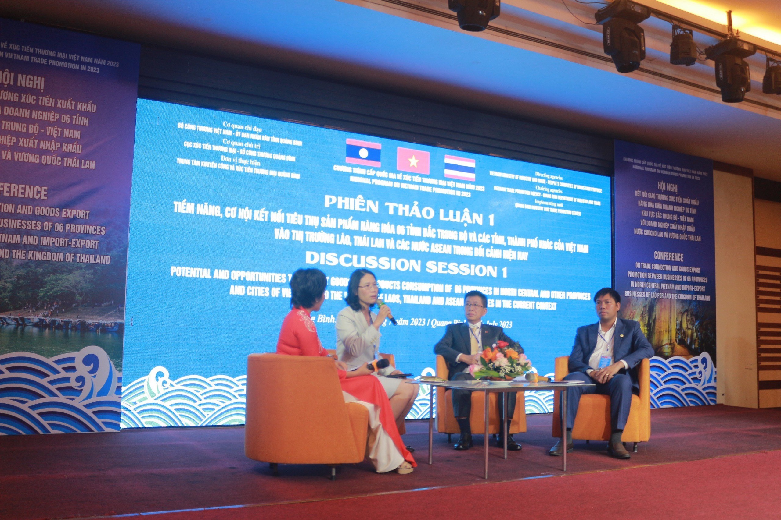 Các đại biểu tham gia Hội nghị đã có những trao đổi tham luận rất sâu sắc, chỉ ra các tiềm năng, cơ hội kết nối tiêu thụ sản phẩm hàng hóa 06 tỉnh Bắc Trung Bộ và các tỉnh, thành phố khác của Việt Nam vào thị trường Lào, Thái Lan và các nước ASEAN trong bối cảnh hiện nay; Trao đổi kinh nghiệm về sản xuất chế biến và xúc tiến thương mại cho các mặt hàng nông sản phục vụ xuất khẩu; Tìm ra các giải pháp cụ thể, hiệu quả để góp phần tháo gỡ khó khăn, hỗ trợ doanh nghiệp trong xuất nhập khẩu, thông quan hàng hóa các cửa khẩu quốc tế Việt Nam – Lào – Thái Lan.