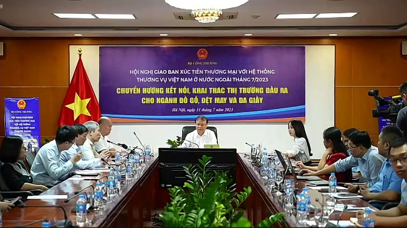Chiều ngày 31/7/2023, tại Thủ đô Hà Nội, dưới sự chủ trì của đồng chí Đỗ Thắng Hải -Thứ trưởng Bộ Công Thương, đã diễn ra Hội nghị giao ban Xúc tiến thương mại với hệ thống Thương vụ Việt Nam ở nước ngoài tháng 7 năm 2023 với chủ đề: Chuyển hướng kết nối, khai thác thị trường đầu ra cho ngành đồ gỗ, dệt may và da giày.