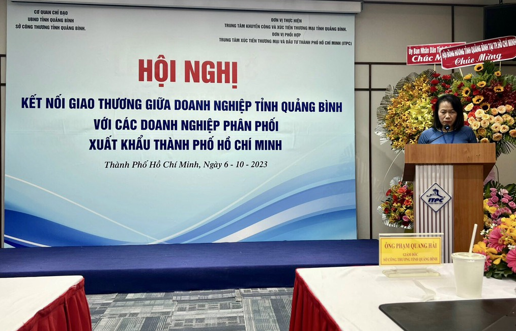 Chiều ngày 06/10/2023, Tại Showroom xuất khẩu số 92-96, đường Nguyễn Huệ, Quận 1, thành phố Hồ Chí Minh đã diễn ra Hội nghị kết nối giao thương giữa doanh nghiệp tỉnh Quảng Bình với các doanh nghiệp phân phối, xuất khẩu thành phố Hồ Chí Minh.