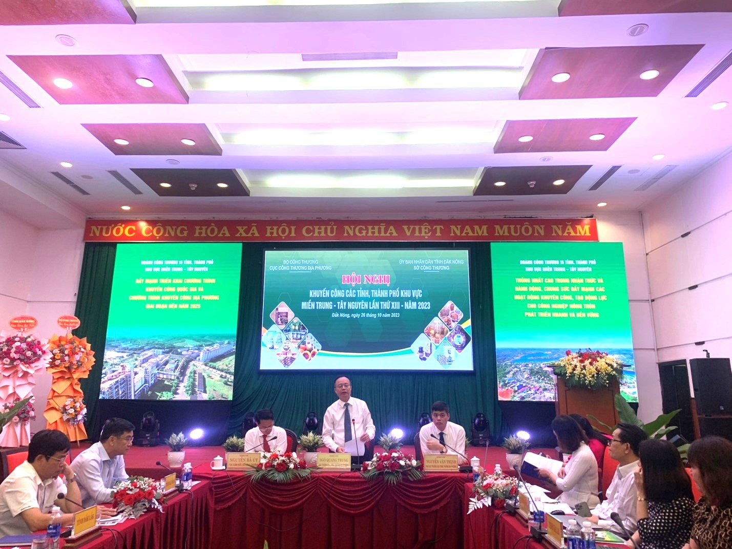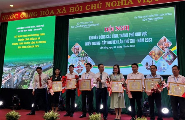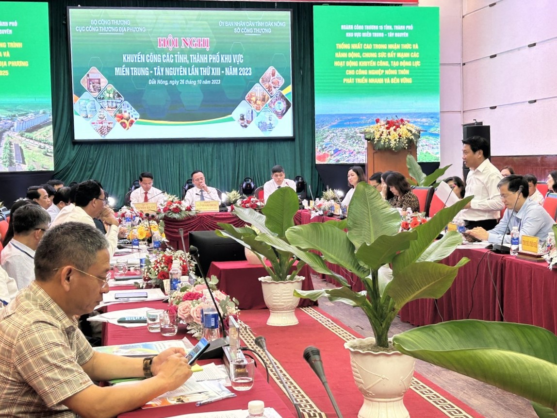 Chiều ngày 26-10-2023, tại TP. Gia Nghĩa, tỉnh Đắk Nông, Cục Công Thương địa phương - Bộ Công Thương phối hợp với Sở Công Thương tỉnh Đắk Nông tổ chức Hội nghị khuyến công các tỉnh, thành phố khu vực Miền Trung - Tây Nguyên lần thứ XIII, năm 2023. Hội nghị do ông Ngô Quang Trung - Cục trưởng Cục Công Thương địa phương ông Nguyễn Bá Út - Giám đốc Sở Công Thương tỉnh Đắk Nông và ông Nguyễn Văn Thịnh - Phó Cục trưởng Cục CTĐP đồng chủ trị hội nghị.