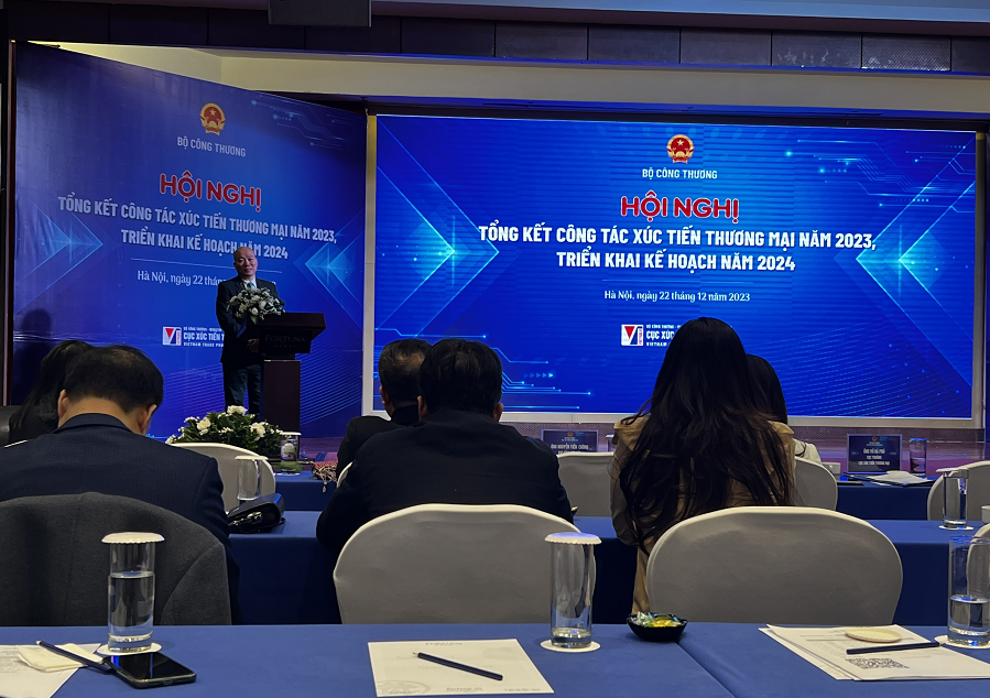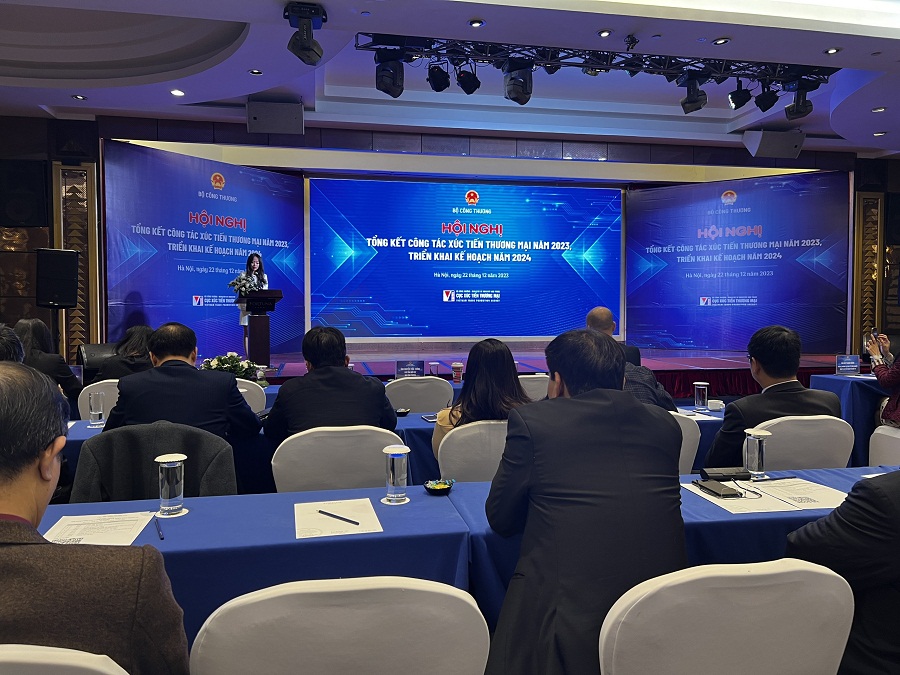Sáng ngày 22/12, tại Hà Nội, Cục Xúc tiến thương mại đã tổ chức Hội nghị Tổng kết công tác Xúc tiến thương mại năm 2023 và triển khai Kế hoạch năm 2024. Tham dự Hội nghị, về phía Lãnh đạo các Bộ ngành Trung ương có Bà Đào Thanh Hương Phó Vụ trưởng Vụ Kinh tế công nghiệp, dịch vụ - Bộ Kế hoạch và Đầu tư; Bà Đỗ Thị Thu Hương Phó Cục trưởng Cục xuất nhập khẩu - Bộ Công Thương; Bà Võ Hồng Anh Phó Vụ trưởng Vụ thị trường châu Âu, châu Mỹ - Bộ Công Thương. Về phía Cục Xúc tiến thương mại có ông Vũ Bá Phú – Cục trưởng Cục Xúc tiến thương mại, Bộ Công Thương cùng đại diện Lãnh đạo các Sở Công Thương, Trung tâm Xúc tiến Đầu tư Du lịch, Trung tâm Xúc tiến thương mại địa phương, các Hiệp hội ngành hàng…