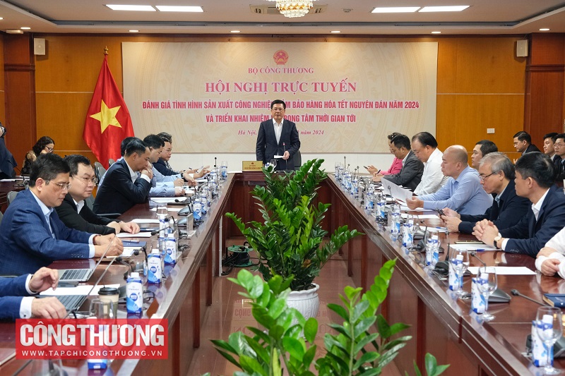 Sáng 16/2/2024, Bộ Công Thương đã tổ chức Hội nghị trực tuyến Đánh giá tình hình sản xuất công nghiệp, đảm bảo hàng hóa Tết Nguyên đán năm 2024 và triển khai nhiệm vụ trọng tâm thời gian tới. Bộ trưởng Nguyễn Hồng Diên chủ trì Hội nghị.