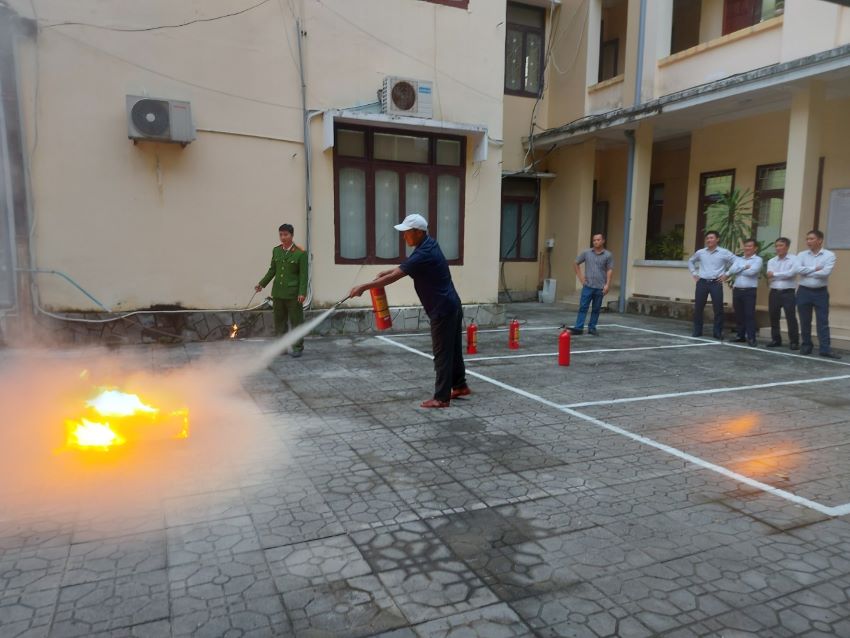 Sở Công Thương phối hợp với Phòng CS PCCC và CNCH Công an tỉnh tổ chức huấn luyện nghiệp vụ PCCC cho các thành viên Đội PCCC cơ sở