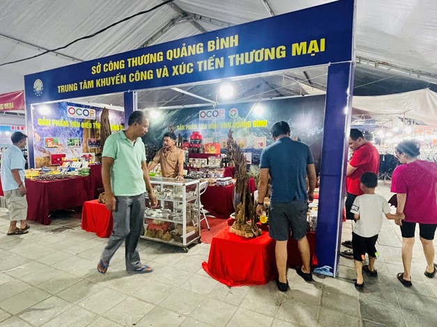 Thực hiện chỉ đạo của Lãnh đạo Sở Công Thương, Trung tâm Khuyến công và Xúc tiến thương mại tổ chức tham gia gian hàng chung của tỉnh tại Hội chợ nhằm quảng bá tiềm năng thế mạnh, thành tựu phát triển kinh tế xã hội của các địa phương, đẩy mạnh hoạt động quảng bá, kết nối, xúc tiến tiêu thụ các sản phẩm đặc sản, các sản phẩm đạt chứng nhận công nghiệp nông thôn tiêu biểu, OCOP của tỉnh về các ngành hàng nông sản, thủy hải sản, tiểu thủ công nghiệp và thủ công mỹ nghệ của các doanh nghiệp trong tỉnh… Góp phần hỗ trợ doanh nghiệp tháo gỡ khó khăn, tìm kiếm và phát triển thị trường tiêu thụ hàng hóa sản phẩm, thúc đẩy phát triển hoạt động sản xuất kinh doanh. Với công tác chuẩn bị chu đáo, ngay sau Lễ khai mạc, gian hàng của tỉnh Quảng Bình đã được đông đảo khách hàng đến tham quan và mua sắm.