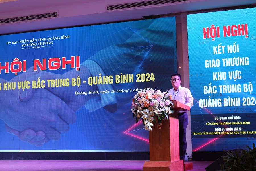 Phát biểu khai mạc tại Hội nghị, ông Phan Hoài Nam – Phó Giám đốc Sở Công Thương Quảng Bình cho biết: Năm 2024 là năm kỷ niệm 420 năm hình thành tỉnh Quảng Bình (1604-2024), 75 năm ngày Quảng Bình quật khởi (15/7/1949-15/7/2024) và 35 năm ngày tái lập tỉnh (1/7/1989-1/7/2024) “Hội nghị kết nối giao thương khu vực Bắc Trung Bộ - Quảng Bình 2024” là một trong những hoạt động nằm trong chuỗi các sự kiện của tỉnh Quảng Bình, nhằm tạo cơ hội giao lưu hợp tác kinh tế, kết nối giao thương, hỗ trợ để cùng phát triển, góp phần nâng cao năng lực và thúc đẩy tình hình hoạt động sản xuất, kinh doanh của các doanh nghiệp, nhà phân phối của tỉnh Quảng Bình và các tỉnh, thành phố trong cả nước; Tạo điều kiện cho các doanh nghiệp trưng bày, quảng bá và giới thiệu các sản phẩm có thế mạnh tiêu biểu của các địa phương; Đồng thời cũng là dịp để các doanh nghiệp sản xuất và nhà phân phối gặp gỡ, trao đổi thông tin, tìm hiểu nhu cầu, phương thức cung ứng, tìm kiếm đối tác kinh doanh, mở rộng thị trường, tăng cơ hội hợp tác đầu tư và ký kết các biên bản ghi nhớ hợp tác kinh doanh tiêu thụ sản phẩm có giá trị. Góp phần tháo gỡ khó khăn trong hoạt động sản xuất, kinh doanh của doanh nghiệp tỉnh Quảng Bình nói riêng và các tỉnh, thành phố trong nước nói chung, đẩy mạnh kết nối kênh tiêu thụ sản phẩm vùng miền một cách ổn định.