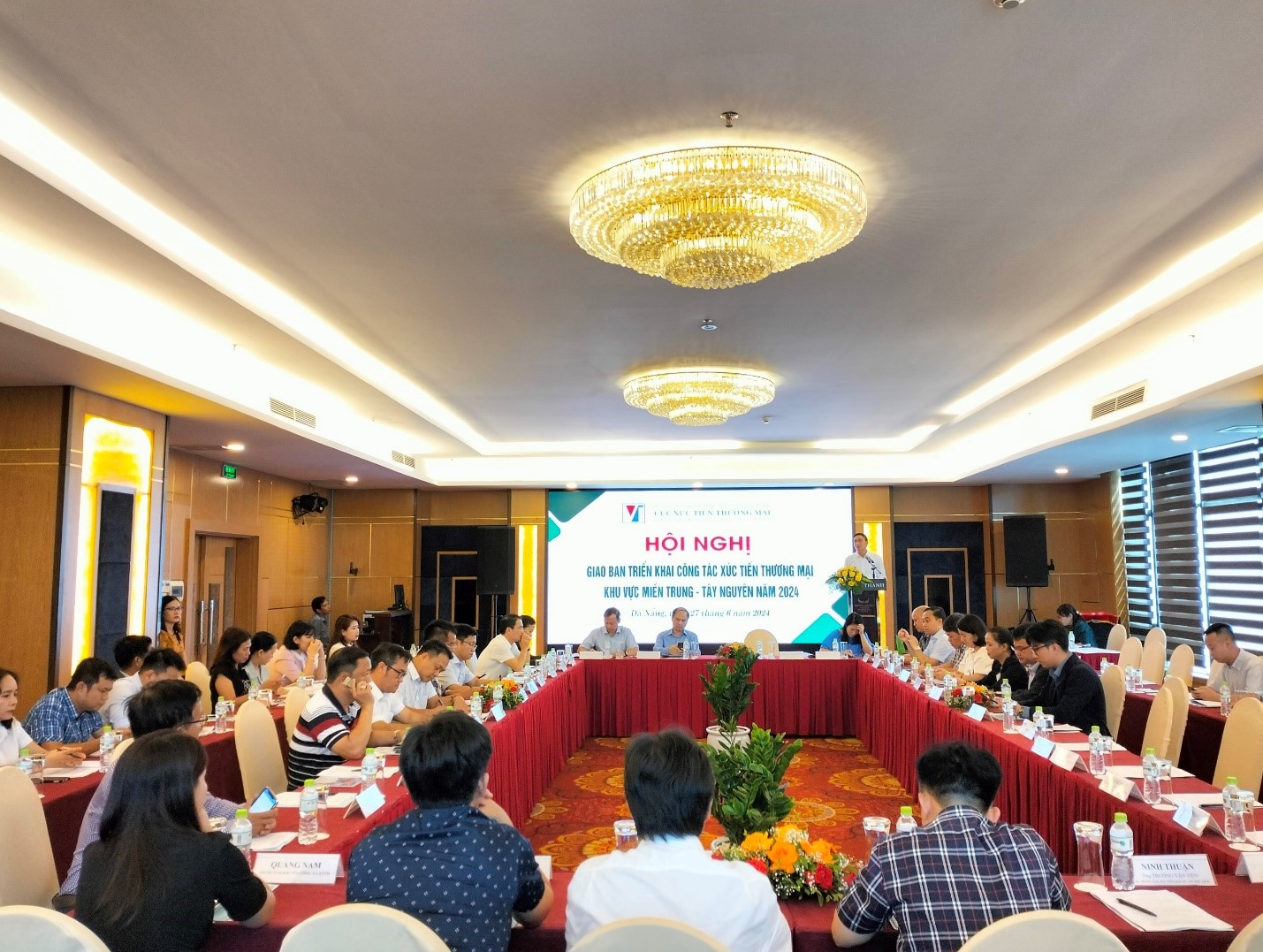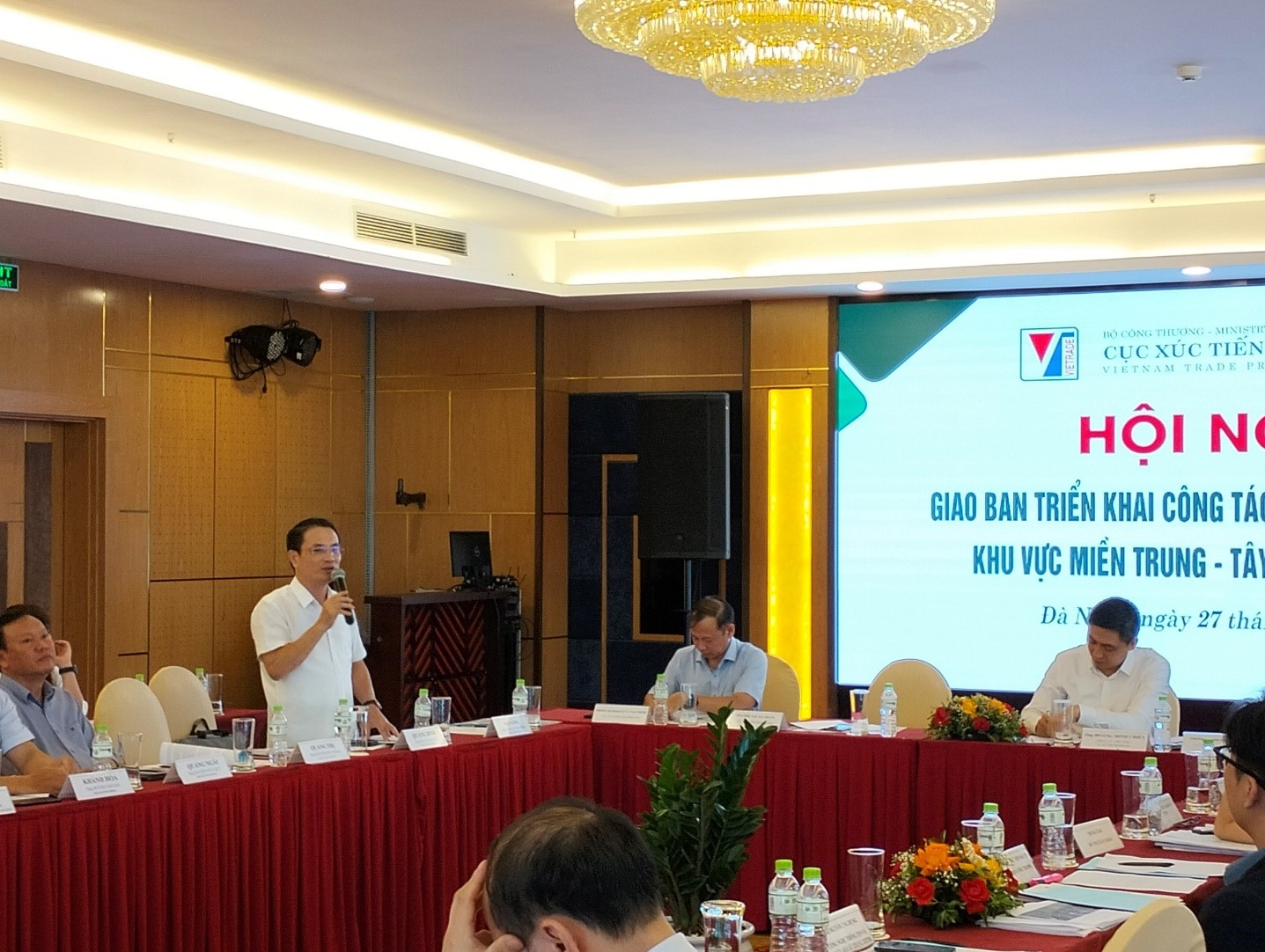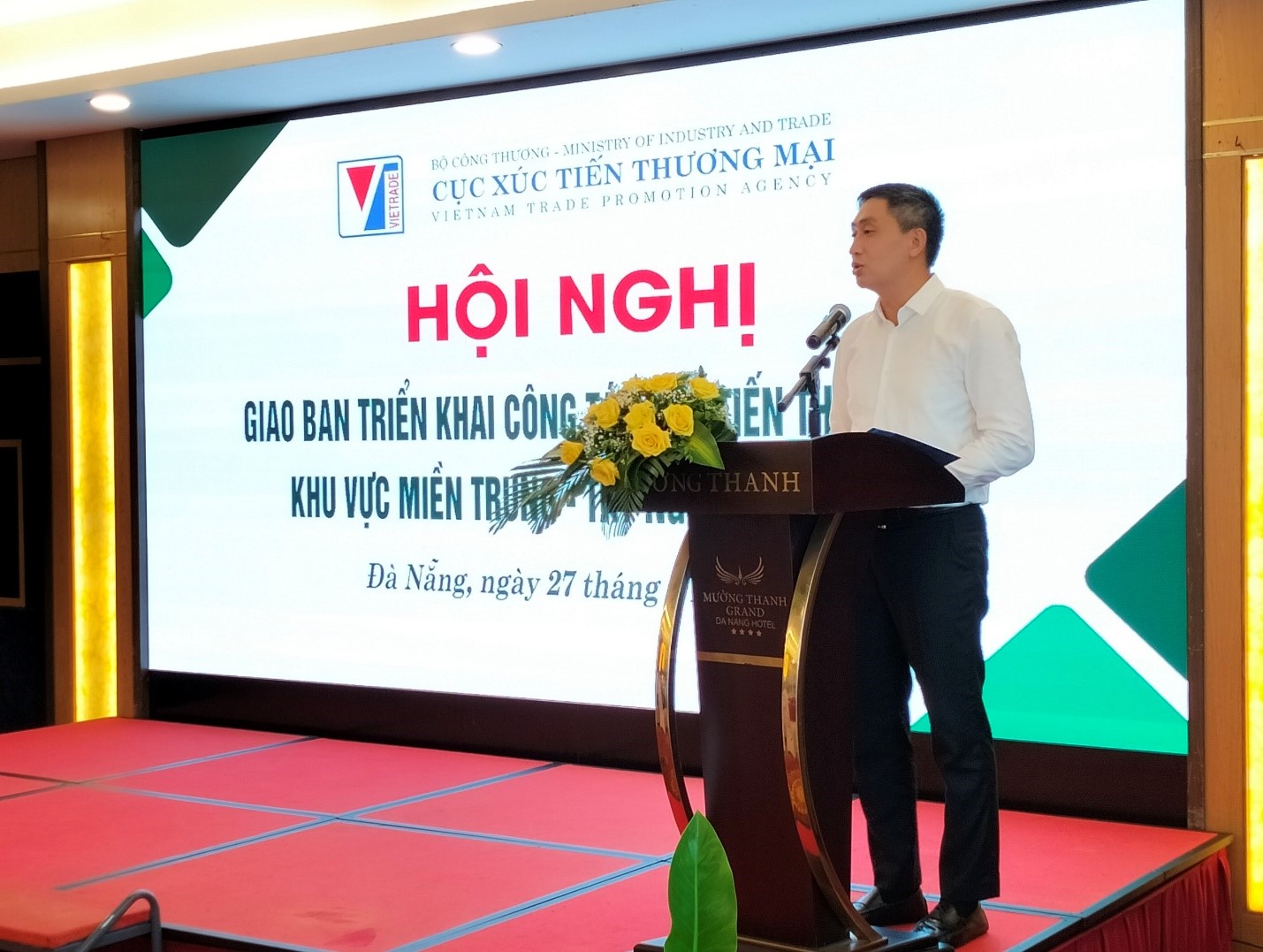 Chiều ngày 27/6/2024 tại thành phố Đà Nẵng, Cục Xúc tiến thương mại - Bộ Công Thương tổ chức Hội nghị giao ban triển khai công tác xúc tiến thương mại khu vực Miền Trung – Tây Nguyên năm 2024. Tham dự và chủ trì Hội nghị có ông Hoàng Minh Chiến – Phó Cục trưởng Cục Xúc tiến thương mại và các Sở Công Thương, Trung tâm Khuyến công và Xúc tiến thương mại 16 tỉnh, thành phố khu vực Miền Trung - Tây Nguyên.