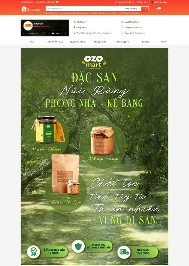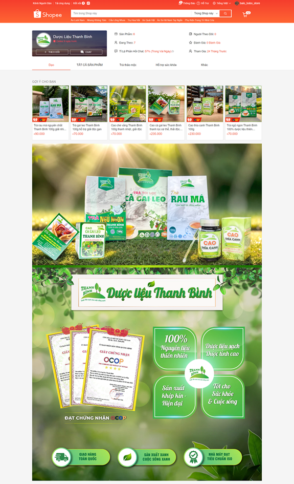 Gian hàng Shopee của HTX sản xuất cây dược liệu sạch và kinh doanh nông nghiệp xã Cự Nẫm.