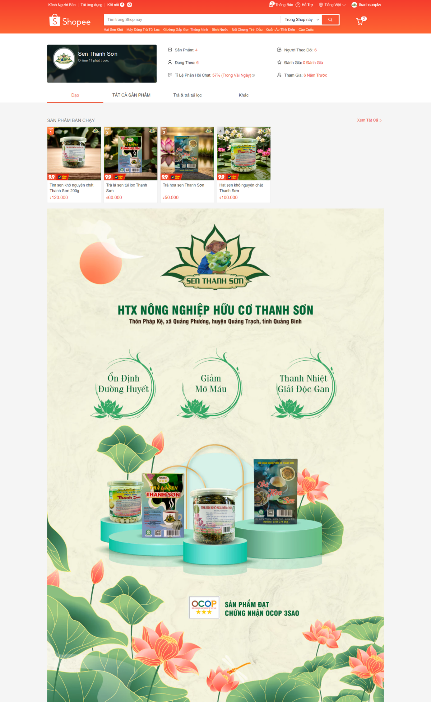 Gian hàng Shopee của HTX nông nghiệp hữu cơ Thanh Sơn