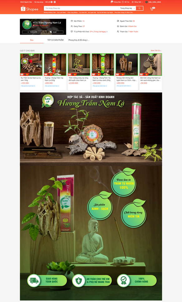 Gian hàng Shopee của HTX sản xuất kinh doanh Trầm hương Nam Lá
