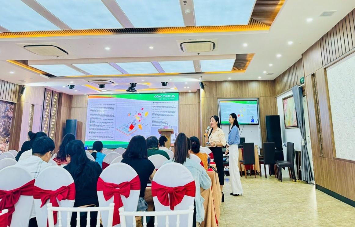 Ngoài ra, các học viên cũng được hướng dẫn và tham gia thực hành về cách thiết kế tờ rơi, banner, card visit, video chuyên nghiệp; viết nội dung và cách đặt tiêu đề cho bài viết; ứng dụng AI để làm nội dung...