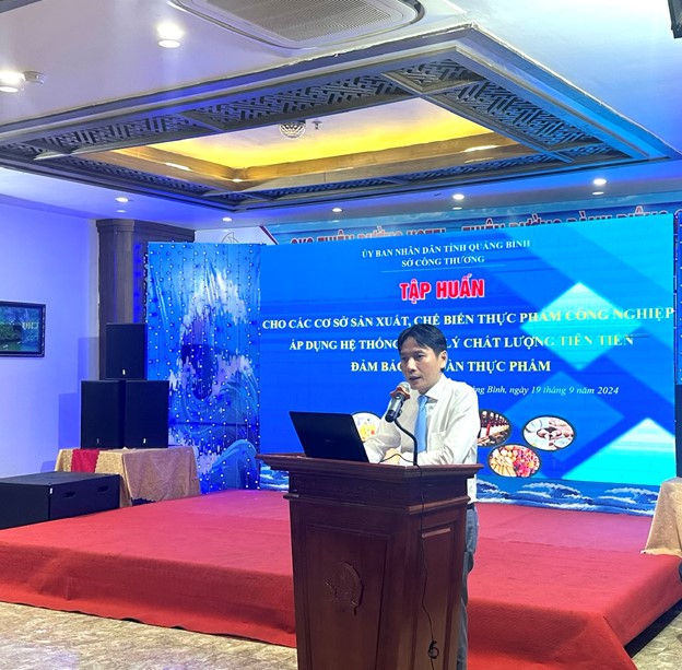 Sáng ngày 19/9/2024, Sở Công Thương Quảng Bình phối hợp Trường Cao đẳng Kinh tế - Kỹ thuật Thương mại (Bộ Công Thương) tổ chức lớp tập huấn cho các cơ sở sản xuất, chế biến thực phẩm công nghiệp áp dụng hệ thống quản lý chất lượng tiên tiến, đảm bảo an toàn thực phẩm.