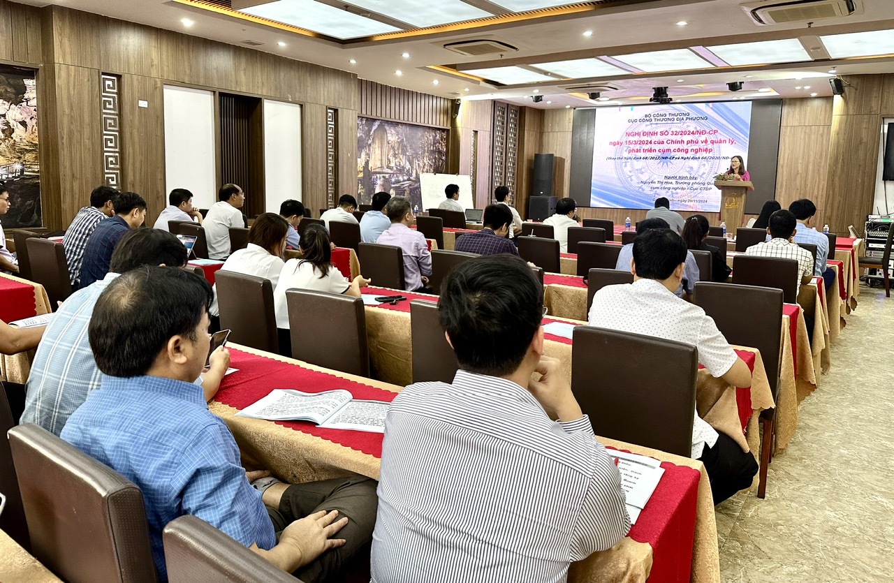 Tại Hội nghị, các đại biểu đã được đại diện Cục Công Thương địa phương phổ biến Nghị định số 32/2024/NĐ-CP ngày 15/3/2024 của Chính phủ về quản lý, phát triển cụm công nghiệp và Thông tư số 14/2024/TT-BCT ngày 15/8/2024 của Bộ Công Thương quy định chế độ báo cáo định kỳ về cụm công nghiệp, cơ sở dữ liệu cụm công nghiệp cả nước và một số mẫu văn bản về quản lý, phát triển cụm công nghiệp; những điểm mới, nổi bật các địa phương, đơn vị, doanh nghiệp cần lưu ý trong quá trình phát triển cụm công nghiệp, sản xuất, kinh doanh.