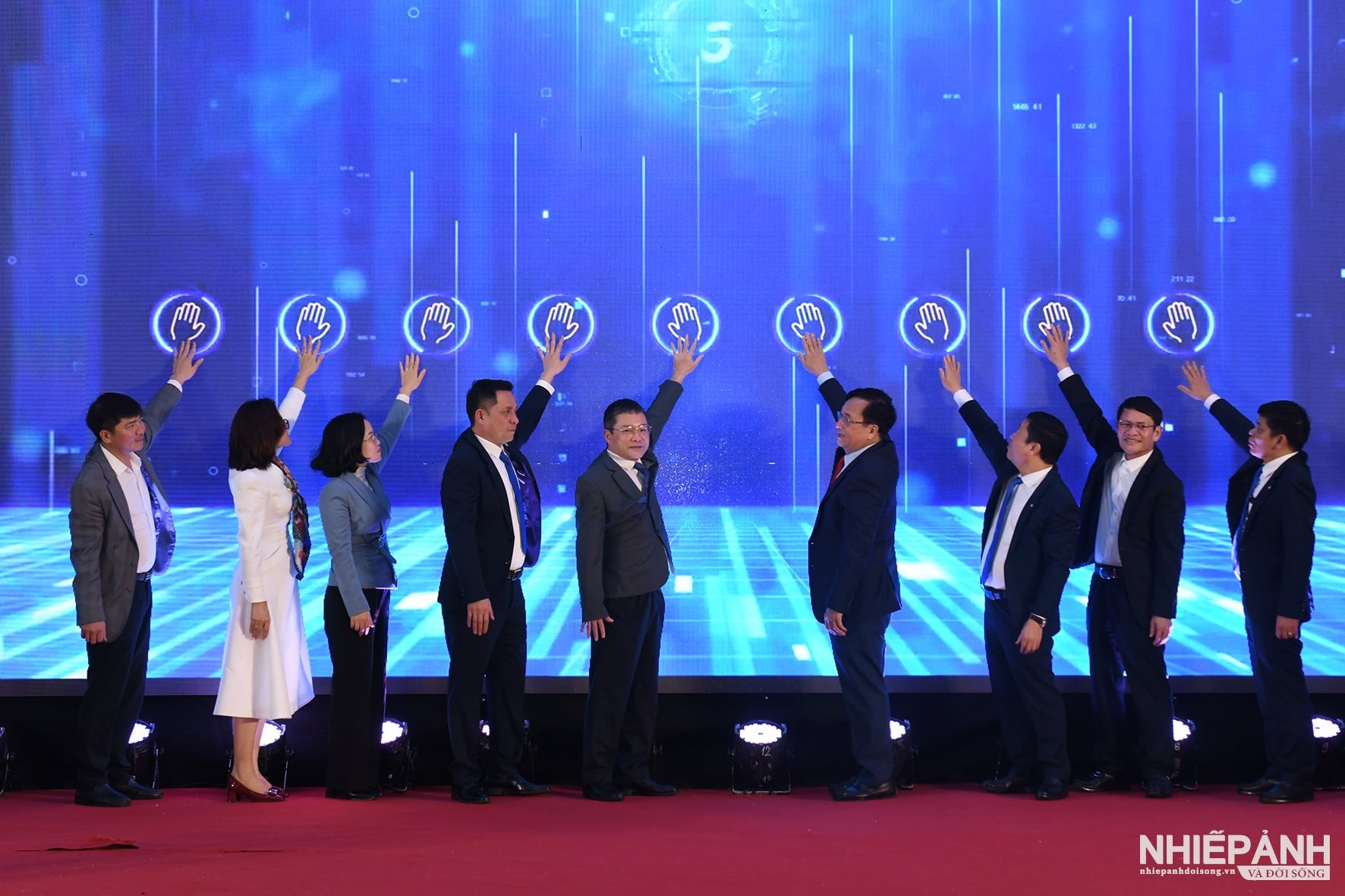 Các đại biểu nhấn nút mở ra giai đoạn mới của Xí nghiệp May Hà Quảng