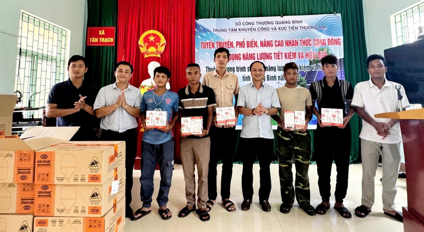 Theo đề nghị của UBND xã Tân Trạch, qua khảo sát, Trung tâm Khuyến công và Xúc tiến thương mại Quảng Bình đã tổ chức phong trào tiết kiệm năng lượng tại khu dân cư thông qua hình thức tuyên tuyền, phổ biến, nâng cao nhận thức cộng đồng về sử dụng năng lượng tiết kiệm và hiệu quả; cấp phát bóng đèn tiết kiệm năng lượng cho các hộ dân trên địa bàn xã Tân Trạch.