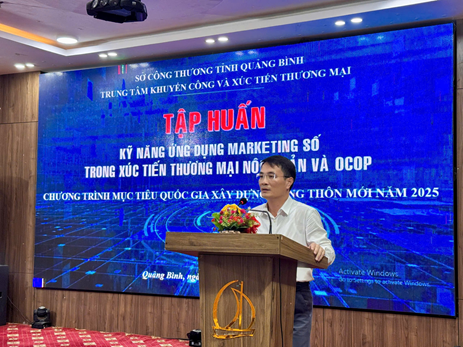 Thực hiện Chương trình mục tiêu quốc gia xây dựng nông thôn mới năm 2025, Sở Công Thương tỉnh Quảng Bình đã chỉ đạo Trung tâm Khuyến công và Xúc tiến thương mại triển khai tổ chức các lớp tập huấn “Kỹ năng ứng dụng marketing số trong xúc tiến thương mại nông sản và OCOP” và “Kỹ năng bán hàng và tiếp thị số cho doanh nghiệp tỉnh Quảng Bình” vào ngày 28/5/2025 tại thành phố Đồng Hới. Đây là hoạt động có ý nghĩa thiết thực nhằm nâng cao năng lực cho các doanh nghiệp, hợp tác xã, hộ sản xuất, kinh doanh tại địa phương trong việc tiếp cận thị trường, xây dựng thương hiệu và phát triển.