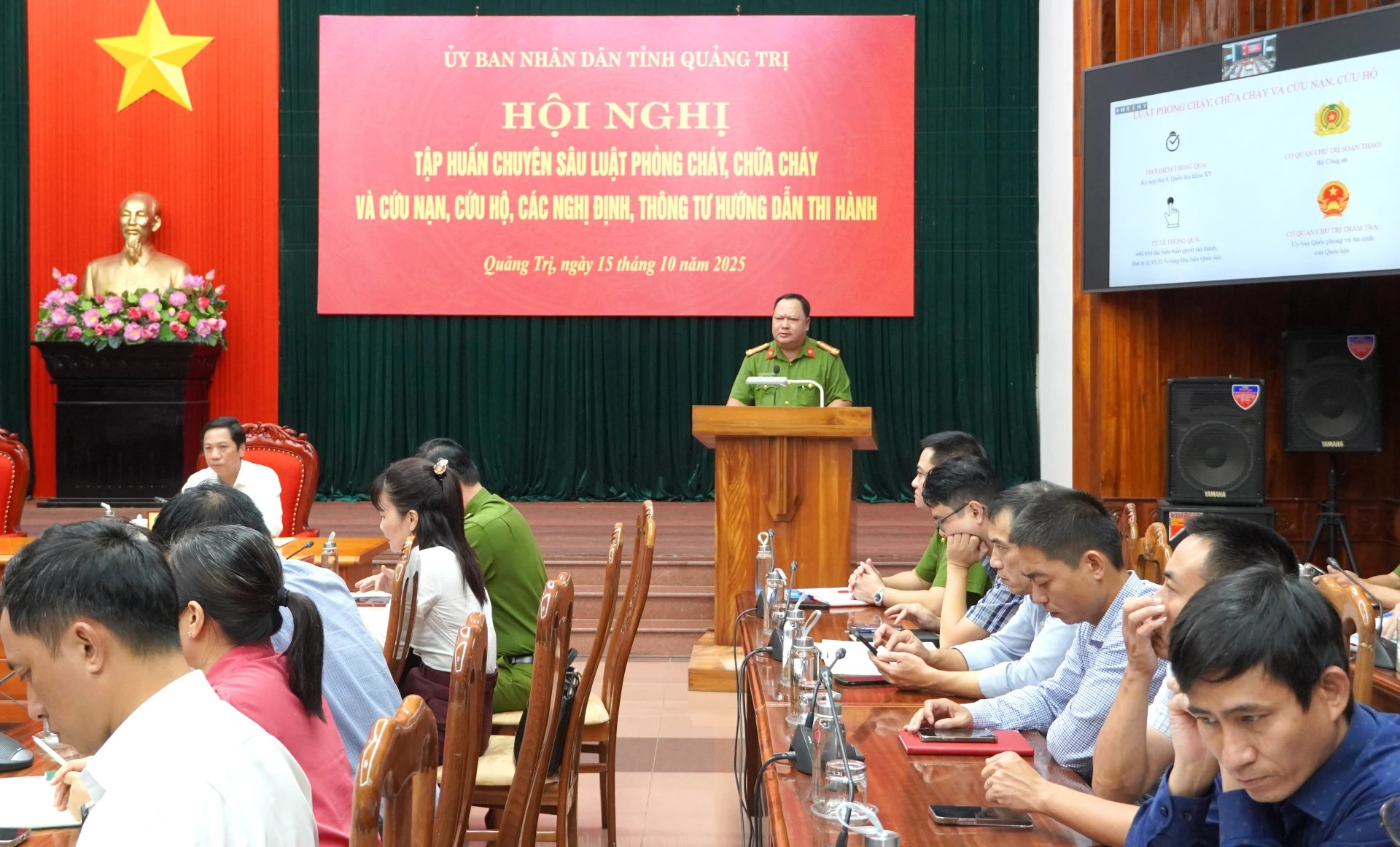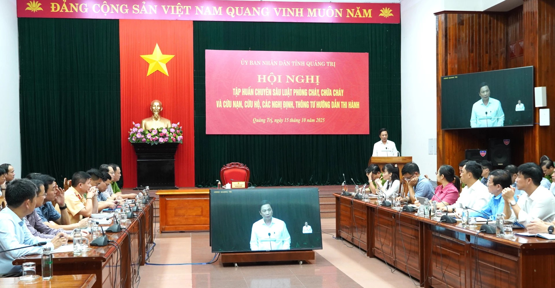 Chiều 15/10, UBND tỉnh tổ chức hội nghị tập huấn chuyên sâu Luật Phòng cháy, chữa cháy (PCCC) và cứu nạn, cứu hộ (CNCH) và các nghị định, thông tư hướng dẫn thi hành. Đồng chí Hoàng Nam, Ủy viên Ban Thường vụ Tỉnh ủy, Phó Chủ tịch Thường trực UBND tỉnh chủ trì hội nghị. Tham dự có đồng chí đại tá Hoàng Ngọc Huynh, Phó Cục trưởng Cục C07, Bộ Công an; đại diện lãnh đạo các sở, ban, ngành, địa phương. Hội nghị trực tuyến từ điểm cầu UBND tỉnh đến 78 điểm cầu UBND cấp xã, phường, đặc khu.