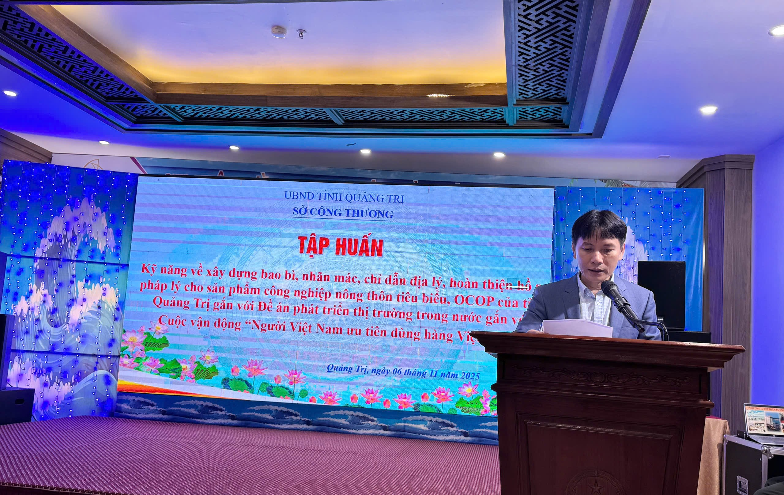 Ngày 06/11/2025, tại Phường Đồng Hới, tỉnh Quảng Trị Sở Công Thương tỉnh Quảng Trị đã phối hợp với Công ty Cổ phần TOPFA Việt Nam tổ chức lớp tập huấn kỹ năng về xây dựng bao bì, nhãn mác, chỉ dẫn địa lý và hoàn thiện hồ sơ pháp lý cho các sản phẩm OCOP và sản phẩm công nghiệp nông thôn tiêu biểu (CNNTTB) trên địa bàn tỉnh. Lớp tập huấn được tổ chức nhằm triển khai Kế hoạch của Sở Công Thương gắn với Đề án phát triển thị trường trong nước và Cuộc vận động “Người Việt Nam ưu tiên dùng hàng Việt Nam”.