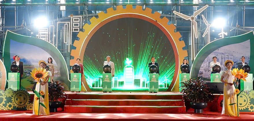 Nghi thức bấm nút khai mạc Hội chợ triển lãm hàng công nghiệp nông thôn, hướng tới chuyển đổi xanh và phát triển bền vững năm 2025