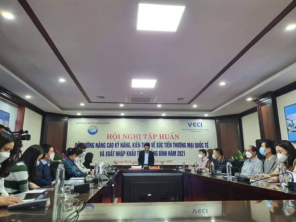 Thực hiện quyết định số 1090/QĐ-UBND ngày 14/4/2021 của UBND tỉnh Quảng Bình về việc phân bổ kinh phí đào tạo, bồi dưỡng cán bộ, công chức, viên chức năm 2021; ngày 07/12/2021, Sở Công Thương Quảng Bình phối hợp phòng Thương mại và Công nghiệp Việt Nam (VCCI) tại Đà Nẵng tổ chức “Lớp bồi dưỡng nâng cao kỹ năng, kiến thức về xúc tiến thương mại quốc tế và xuất nhập khẩu tỉnh Quảng Bình năm 2021”.
