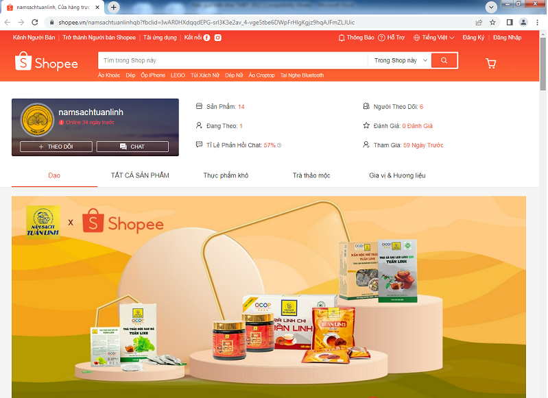 Gian hàng trực tuyến của Hợp tác xã sản xuất nấm sạch và kinh doanh nông nghiệp Tuấn Linh trên Shopee.