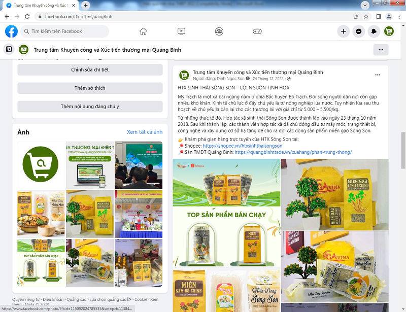 Bắt kịp xu hướng bùng nổ của thương mại điện tử trong kỷ nguyên số, Triển khai Quyết định số 1623/QĐ-UBND ngày 16/6/2022 của UBND tỉnh Quảng Bình về việc phê duyệt Nâng cấp tính năng Sàn Giao dịch thương mại điện tử Quảng Bình. Sàn giao dịch Thương mại điện tử tỉnh Quảng Bình hiện có chức năng tạo, quản lý gian hàng, cho phép doanh nghiệp đăng tải sản phẩm, dịch vụ, quản lý số lượng, điều chỉnh giá bán, tạo khuyến mãi, trang trí gian hàng, quản lý bán hàng một cách nhanh chóng, dễ dàng và chuyên nghiệp, chú trọng vào trải nghiệm của người dùng trên cả phiên bản website và phiên bản thiết bị di động, cho phép người mua tạo tài khoản mua hàng, quản lý giỏ hàng, đặt hàng hoá, dịch vụ một cách thuận tiện; tính năng thanh toán thông qua qua sàn giao dịch TMĐT với các hình thức thanh toán phổ biến, dễ dàng và nhanh chóng; tính năng liên kết với các đối tác cung cấp dịch vụ vận chuyển để giao nhận hàng, theo dõi tình trạng đơn hàng trực quan, chính xác theo thời gian thực; tính năng đánh giá sản phẩm, đánh giá doanh nghiệp, đánh giá khách hàng khi mua hàng hoá,dịch vụ tại sàn giao dịch TMĐT để cung cấp thông tin khách quan cho khách hàng, doanh nghiệp, gia tăng sự uy tín và độ tin cậy của doanh nghiệp cũng như khách hàng khi giao dịch; tính năng tìm kiếm/đề xuất sản phẩm, hàng hoá, dịch vụ phù hợp tương ứng với nhu cầu của khách hàng; tính năng trao đổi trực tiếp giữa doanh nghiệp và khách hàng ngay trên sàn giao dịch TMĐT; tính năng thông báo khi có giao dịch diễn ra; tính năng liên kết, chia sẻ sản phẩm trên sàn giao dịch TMĐT với mạng xã hội để tăng hiệu quả tiếp thị, truyền thông, tạo cơ hội lan toả sản phẩm, dịch vụ của doanh nghiệp và thương hiệu của doanh nghiệp trên internet…