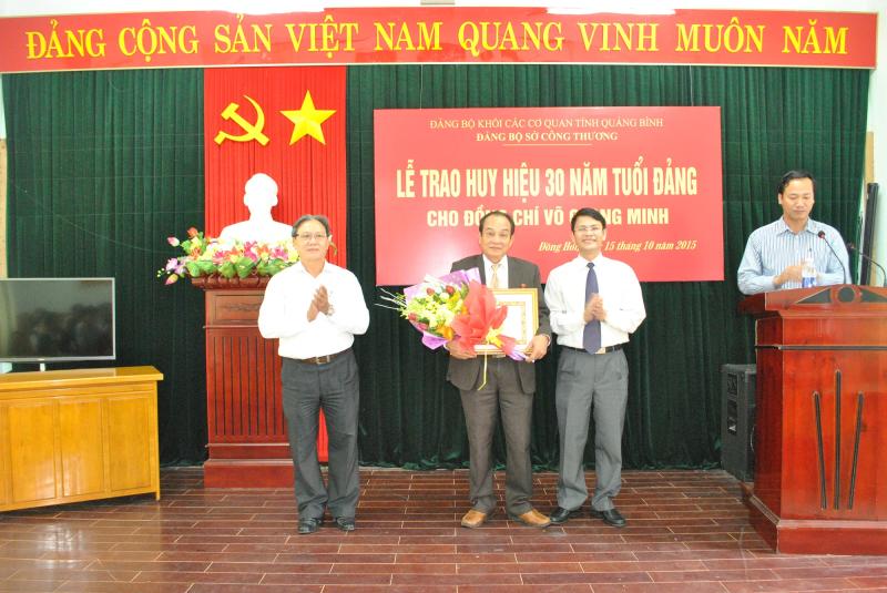 Thực hiện Quyết định số 1986-QĐ/TU ngày 12/8/2015 của Tỉnh ủy Quảng Bình về việc tặng Huy hiệu Đảng, ngày 15/10/2015, Đảng bộ Sở Công Thương đã tổ chức Lễ trao tặng Huy hiệu 30 năm tuổi Đảng cho đồng chí Võ Quang Minh, Giám đốc Dự án Pin năng lượng Mặt trời; Nguyên UVTV, Phó Bí thư Đảng bộ Sở Công Thương.