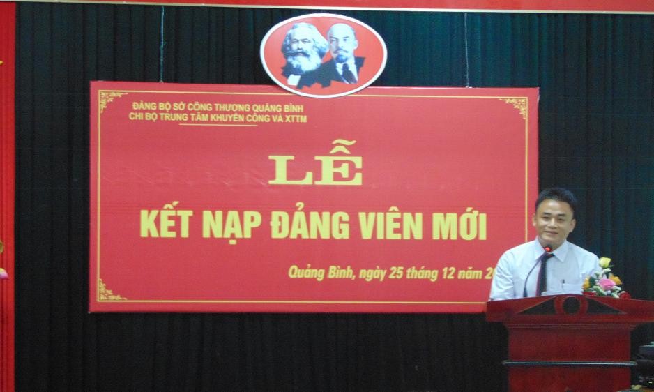 Chiều ngày 25/12/2015, được sự nhất trí của Đảng ủy Sở Công Thương, Chi bộ Trung tâm Khuyến công & XTTM đã long trọng tổ chức lễ kết nạp Đảng viên mới đối với quần chúng ưu tú Lê Minh Phương.