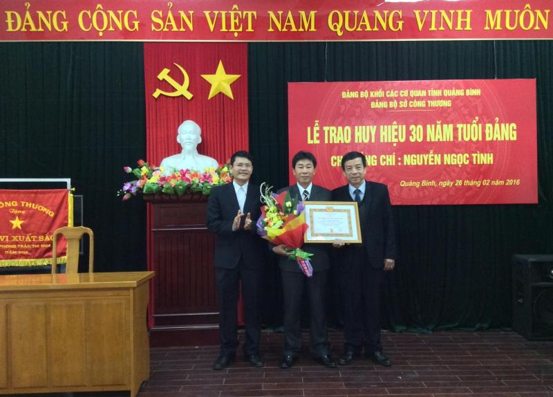 Thực hiện Quyết định số 125- QĐ/TU ngày 15/01/2016 của Tỉnh ủy Quảng Bình về việc tặng Huy hiệu Đảng, ngày 26/02/2016, Đảng bộ Sở Công Thương đã tổ chức Lễ trao tặng Huy hiệu 30 năm tuổi Đảng cho đồng chí Nguyễn Ngọc Tình, cán bộ ban, Bí thư Chi bộ Ban QLDA Pin năng lượng mặt trời.