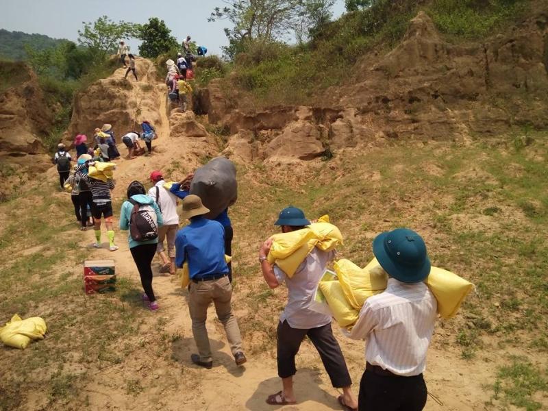 Vận chuyển các phần quà vào bản Nước đắng – xã Trường Sơn