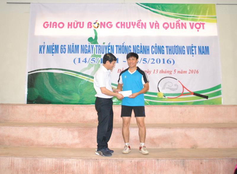 Đ/c Phan Văn Thường - Giám đốc Sở Công Thương trao quà cho đội giải nhất môn bóng chuyền nam