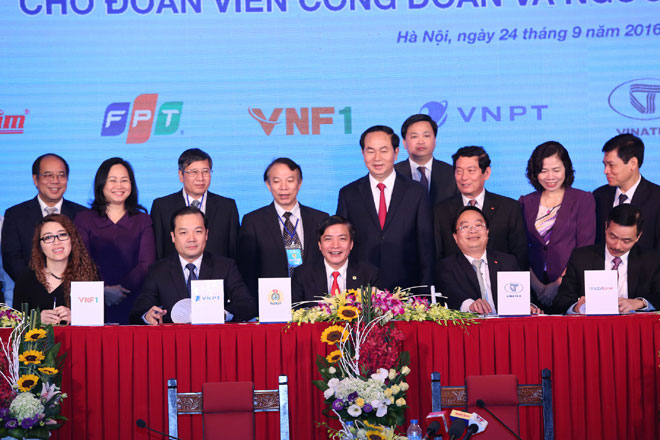 Với tinh thần chỉ đạo của Chủ tịch nước Trần Đại Quang, thời gian tới đây đoàn viên Công đoàn sẽ được ưu đãi: Hiện thực hóa sự quan tâm, chăm lo đến lợi ích thiết thực của đoàn viên công đoàn, Tổng Liên đoàn Lao động Việt Nam đã ký thỏa thuận hợp tác giữa Tổng Liên đoàn Lao động Việt Nam và 9 đối tác về chăm lo cho đoàn viên và người lao động. Chủ tịch Nước Trần Đại Quang và các đại biểu chứng kiến lễ ký kết. Việc ký kết với các đối tác là các tập đoàn, Tổng công ty, doanh nghiệp để triển khai, đưa các sản phẩm dịch vụ đến đoàn viên và người lao động với giá ưu đãi. Các đối tác ký kết với Tổng Liên đoàn Lao động Việt Nam gồm: Ngân hàng TMCP Công thương Việt Nam (VietinBank); Tập đoàn Bưu chính Viễn thông Việt Nam (VNPT); Tập đoàn Dệt May Việt Nam (Vinatex); Tổng công ty Lương thực Miền Bắc; Liên hiệp các HTX thương mại TPHCM (Saigon Co.op); Cty cổ phần viễn thông FPT; Hiệp hội Du lịch công đoàn Việt Nam; Công ty cổ phần đầu tư và phát triển Nguyễn Kim; Tổng Cty Viễn thông MobiFone. Theo các nội dung ký kết, đoàn viên, người lao động sẽ được rất nhiều lợi ích khi dùng dịch vụ từ các đơn vị trên. Với sự vào cuộc mạnh mẽ, sự chung tay góp sức của các đối tác, các doanh nghiệp, các tập đoàn kinh tế, khi những cam kết này được triển khai thực hiện sẽ góp phần giúp đoàn viên công đoàn giảm bớt khó khăn, cải thiện điều kiện sống, thực sự có “quyền lợi đảm bảo, phúc lợi tốt hơn” - phương châm hành động mà tổ chức công đoàn Việt Nam đang nỗ lực thực hiện trong thời gian qua và sắp tới.