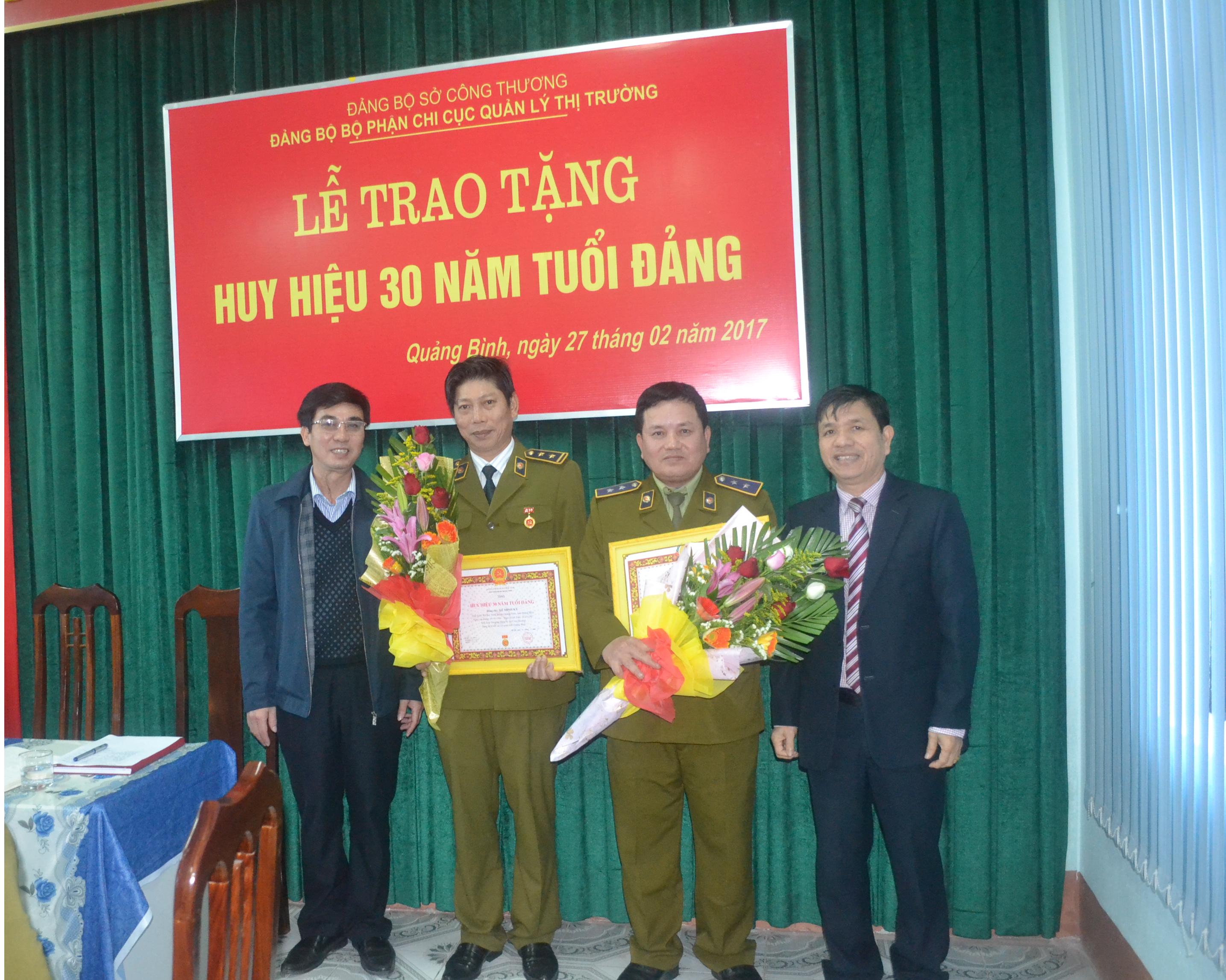 Thực hiện Quyết định số 478-QĐ/TU ngày 20/01/2017 của Tỉnh ủy Quảng Bình về việc tặng Huy hiệu Đảng, ngày 27/02/2017 Đảng bộ bộ phận Chi cục Quản lý thị trường đã tổ chức Lễ trao tặng Huy hiệu 30 năm tuổi Đảng cho đồng chí Lê Minh Kỳ và đồng chí Hoàng Văn Mạnh thuộc Đảng bộ.