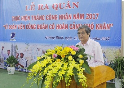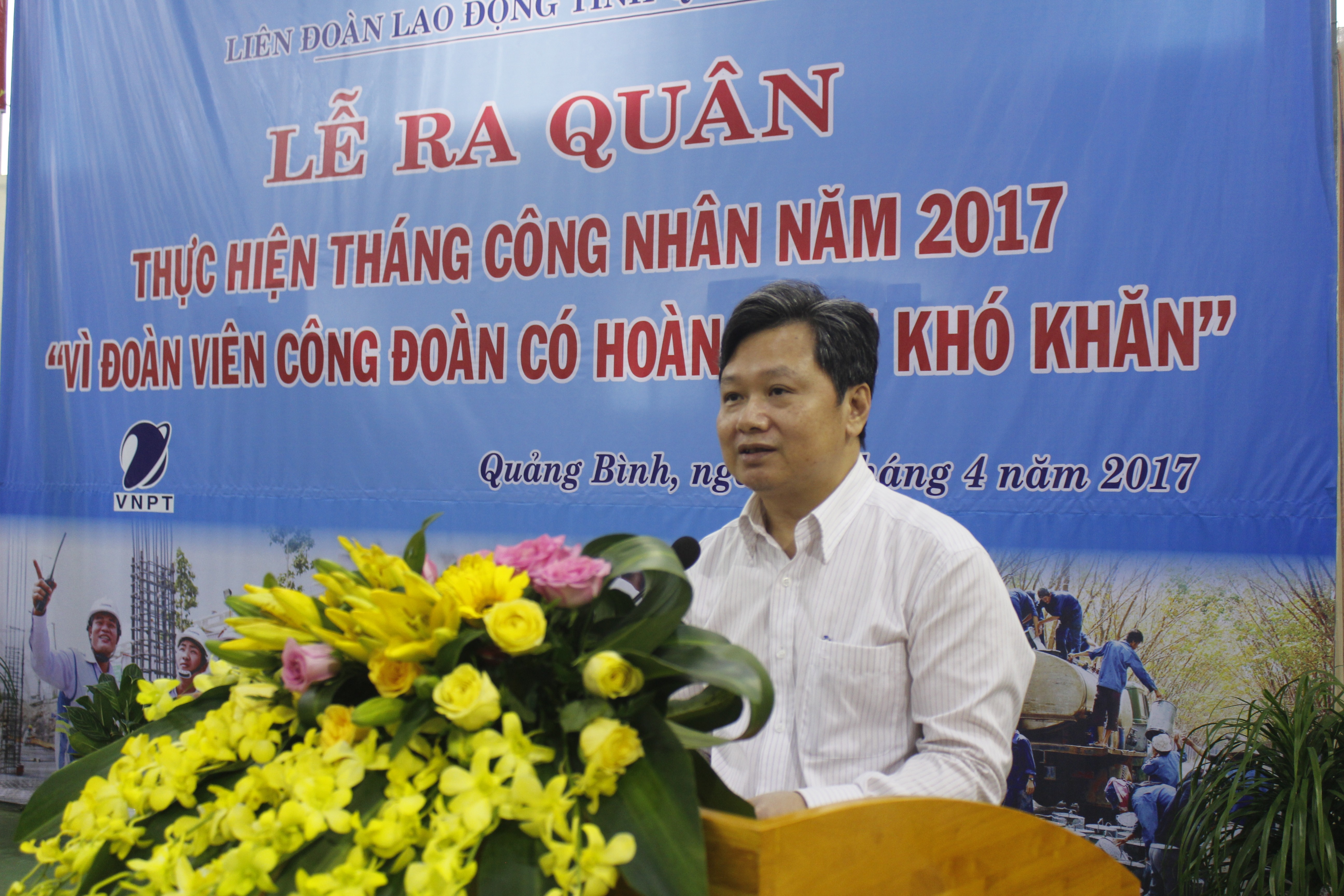 Ngày 12/4/2017, Liên đoàn Lao động tỉnh Quảng Bình đã tổ chức Lễ ra quân thực hiện "Tháng Công nhân” năm 2017. Dự Lễ phát động có đồng chí Nguyễn Tiến Hoàng - TUV, Phó Chủ tịch Ủy ban Nhân nhân tỉnh; đồng chí Nguyễn Lương Bình - TUV, Chủ tịch LĐLĐ tỉnh; đại diện lãnh đạo các sở, ban ngành cấp tỉnh.