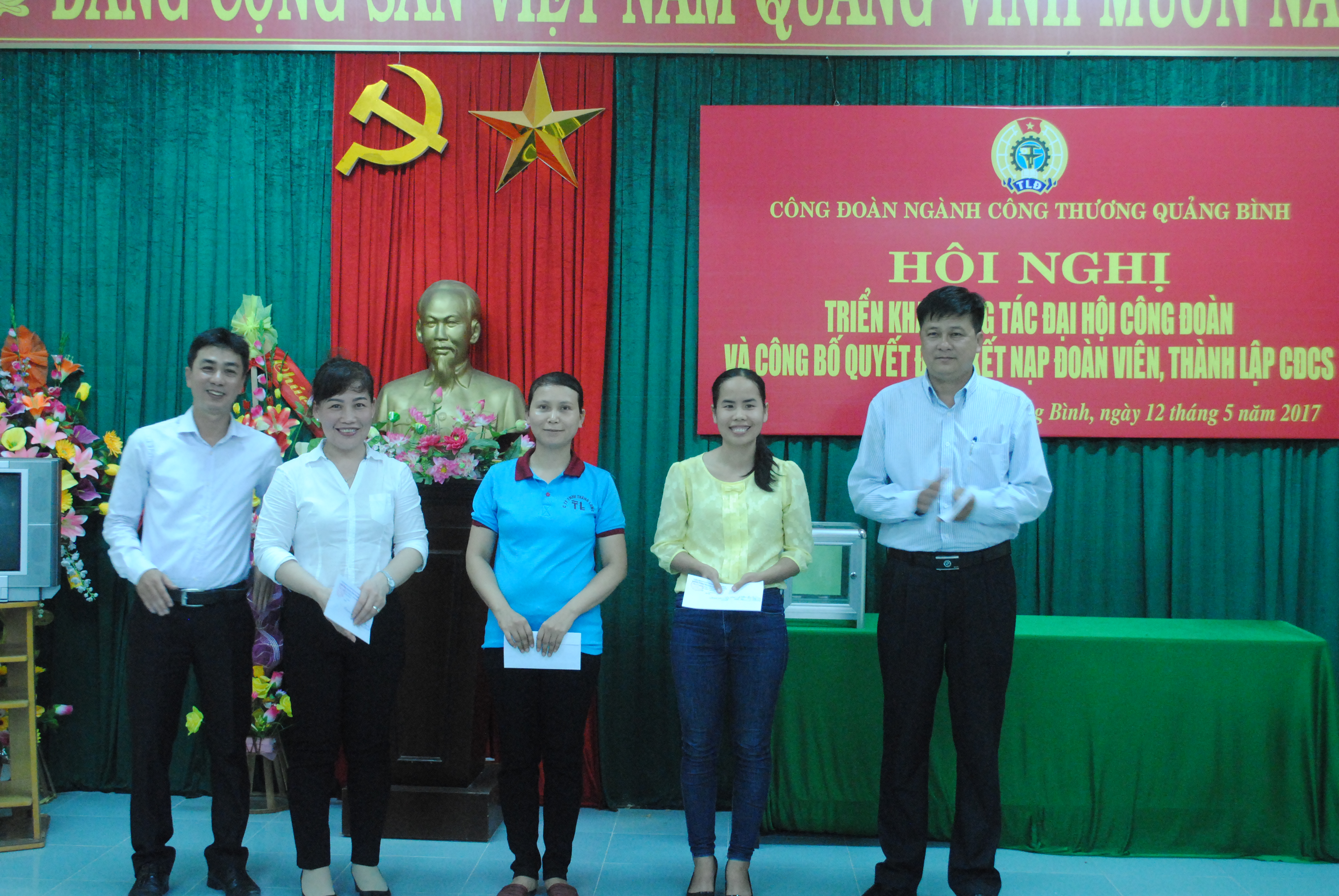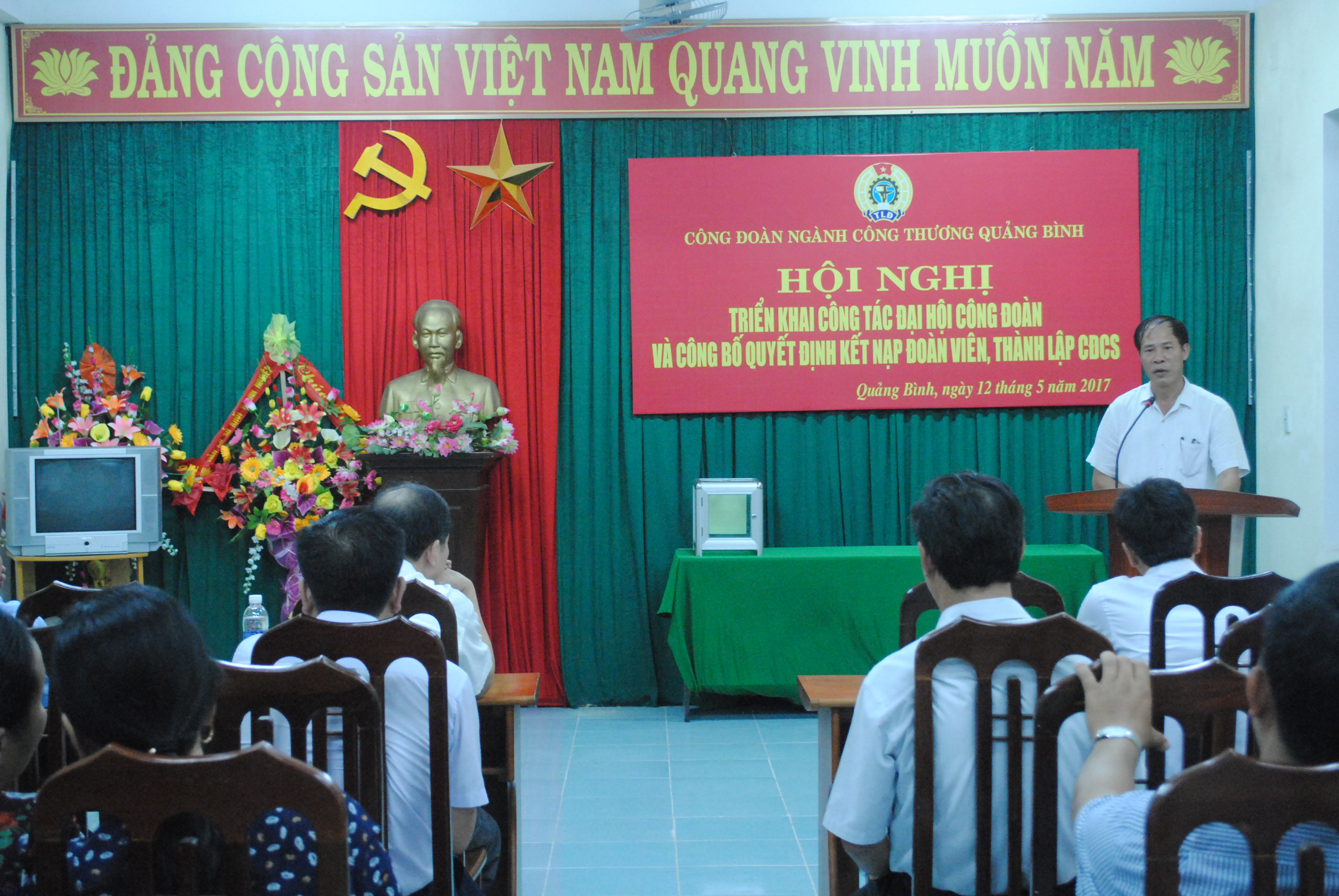 Ngày 12/5, Công đoàn ngành Công Thương Quảng Bình tổ chức lễ công bố quyết và ra mắt 2 CĐCS, với 59 đoàn viên; quyết hỗ trợ xây dựng nhà “Mái ấm Công đoàn”; và trao 20 suất quà hỗ trợ công nhân lao động có hoàn cảnh khó khăn, với số tiền 10 triệu đồng. Đồng chí Nguyễn Xuân Thạch - Phó Chủ tịch LĐLĐ tỉnh đã đến dự và chỉ đạo.