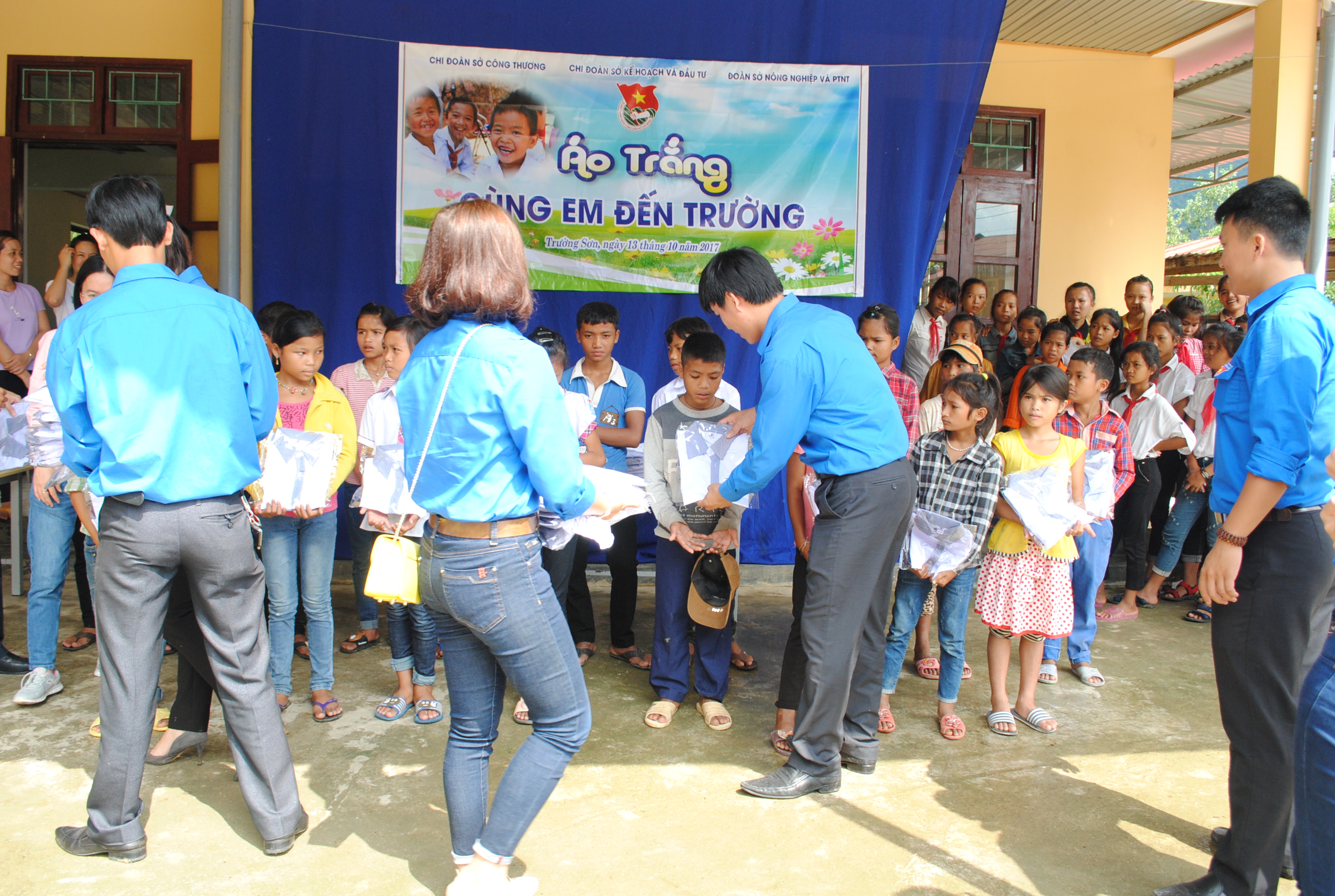 Với tinh thần tuổi trẻ xung kích, tình nguyện vì cuộc sống cộng đồng, chăm sóc giáo dục thiếu niên nhi đồng. Lực lượng đoàn viên thanh niên của 3 Sở hưởng ứng hoạt động tiếp sức đến trường, sự kêu gọi, vận động hỗ trợ, giúp đỡ từ các cơ quan, ban ngành và các tổ chức đoàn thể của Ban Giám hiệu nhà trường. Trong chuyến tình nguyện 03 Chi đoàn đã đến thăm và trao 100 phần quà, với 100 chiếc áo trắng tặng các em học sinh tại Trường PTDT Bán trú THCS Trường Sơn.