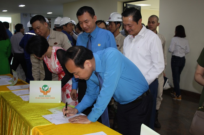 Bên cạnh đó, CĐCTVN phối hợp cùng Tạp chí Công Thương triển khai trực tiếp ký tên để hưởng ứng hoạt động “Triệu chữ ký vì an toàn thực phẩm” thông qua 2 hình thức: Ký tên điện tử trên Fanpage của Chương trình và ký danh sách theo mẫu. Với gần 500 chữ ký thu được tại Lễ Phát động, CĐCTVN đã mang đến sự nâng cao nhận thức cho đoàn viên nói riêng và người tiêu dùng nói chung cũng như những cơ sở sản xuất, kinh doanh về vấn đề an toàn thực phẩm nhằm bảo vệ quyền lợi cho người lao động trên cả nước.