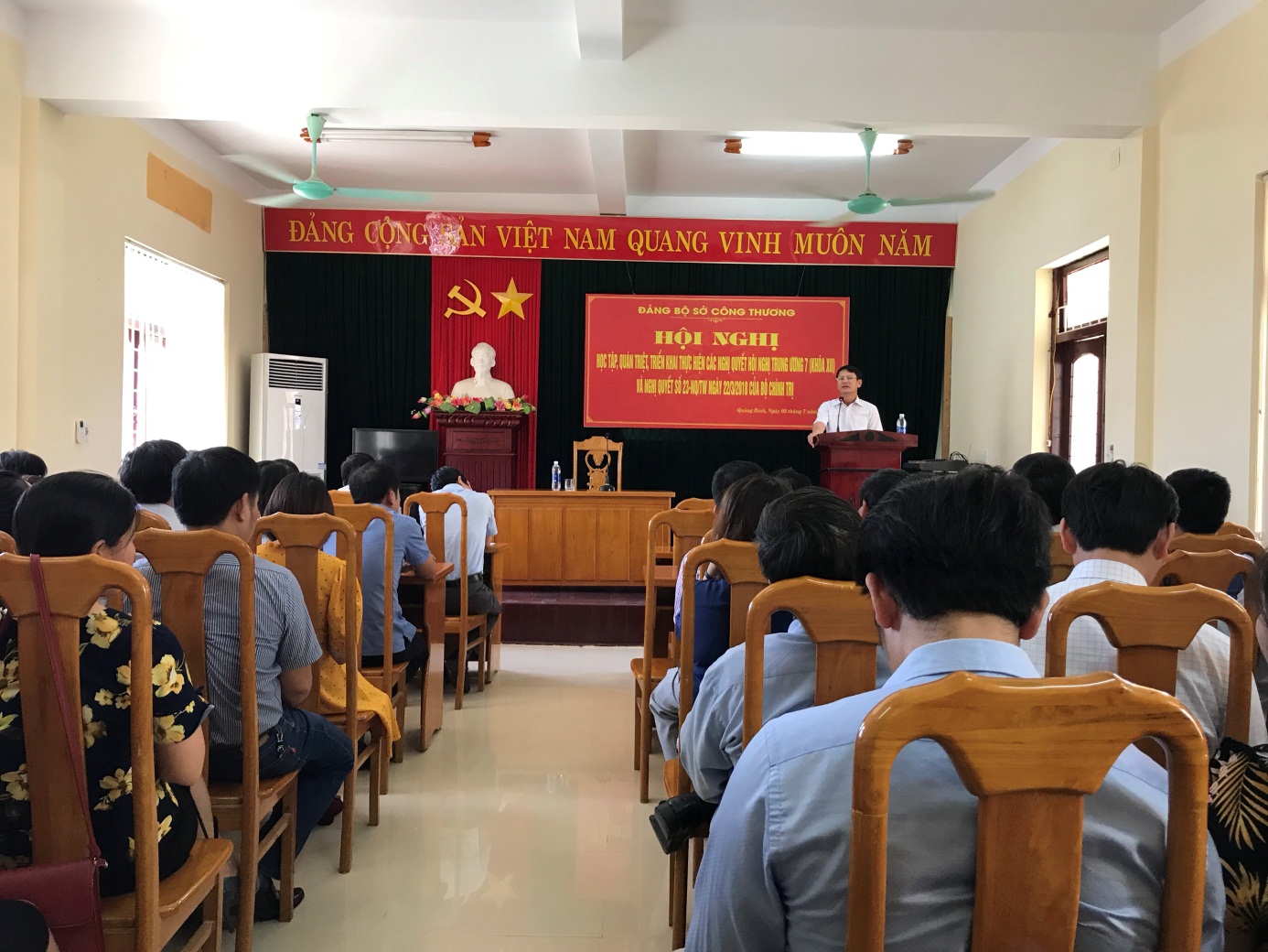Thực hiện Kế hoạch số 69-KH/TU ngày 17/4/2018 của Tỉnh ủy Quảng Bình và kế hoạch số 47-KH/ĐUK ngày 17/5/2018 của Đảng ủy Khối các cơ quan tỉnh, ngày 03/7/2018 Đảng bộ Sở Công Thương tổ chức Hội nghị học tập, quán triệt, triển khai thực hiện các Nghị quyết Hội nghị Trung ương 7 (khóa XII) và Nghị quyết số 23-NQ/TW ngày 22/3/2018 của Bộ Chính trị.