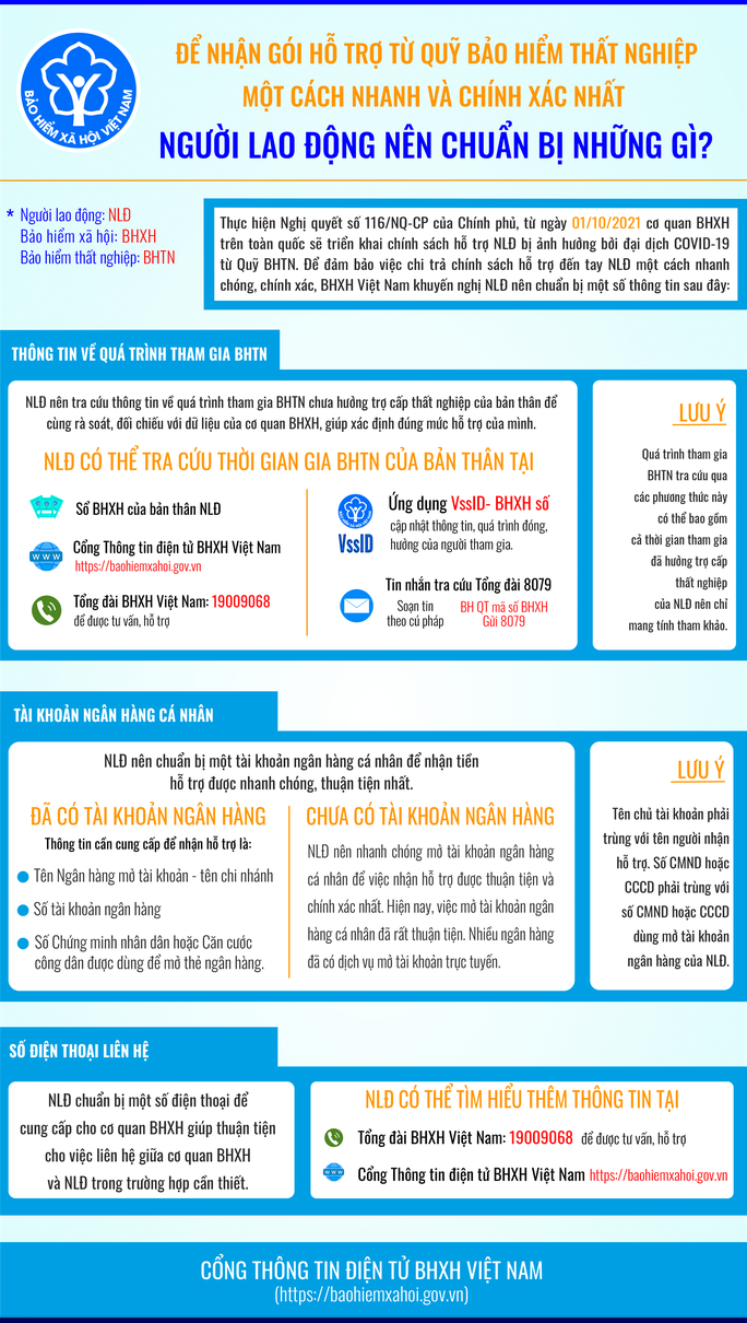 Để đảm bảo việc chi trả chính sách hỗ trợ đến tay NLĐ một cách nhanh chóng, chính xác, BHXH Việt Nam khuyến nghị NLĐ nên chuẩn bị một số thông tin sau: